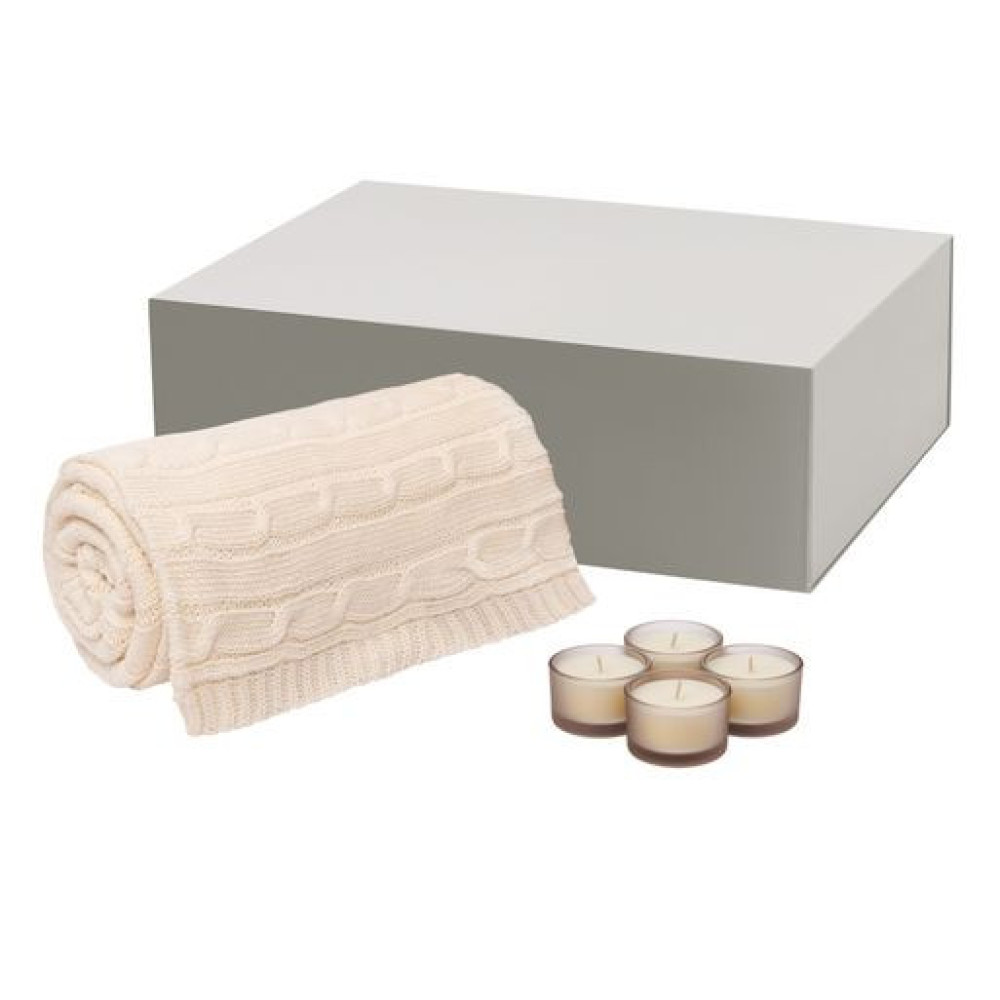 Подарочный набор Сенто (Sento), Фадо (Fado), бежевый (свеча, плед)