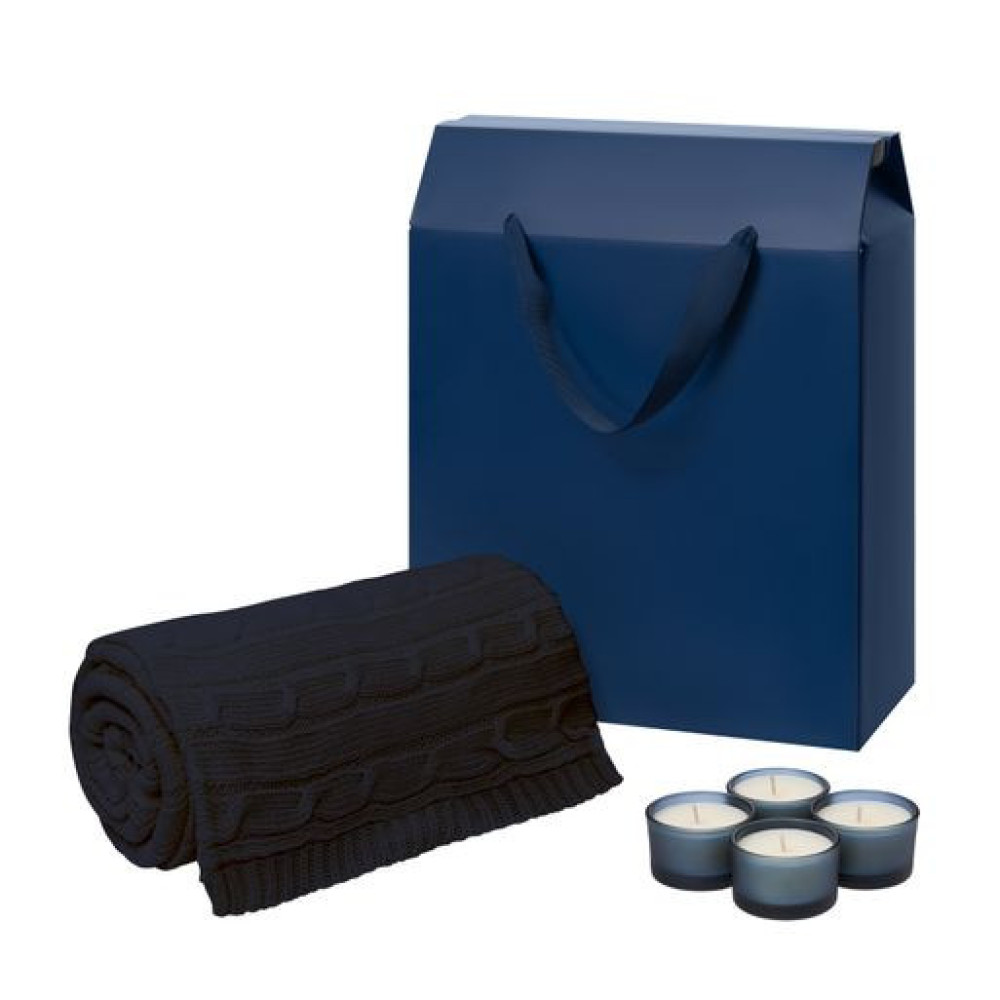 Подарочный набор Сенто (Sento), Фадо (Fado), синий (свечи, плед)