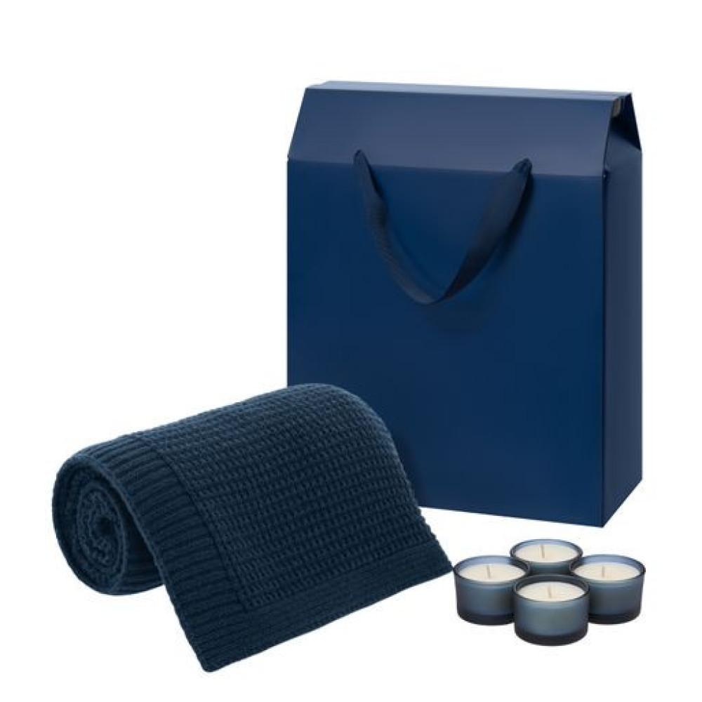 Подарочный набор Сенто (Sento), Мальта Софт (Malta Soft), синий (свечи, плед)