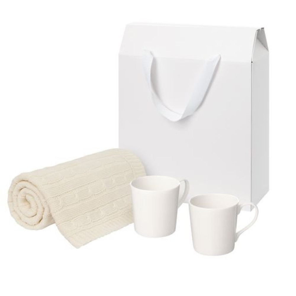 Подарочный набор Сиена (Siena), Фадо (Fado), бежевый в коробке-пакете (две фарфоровых кружки, плед)