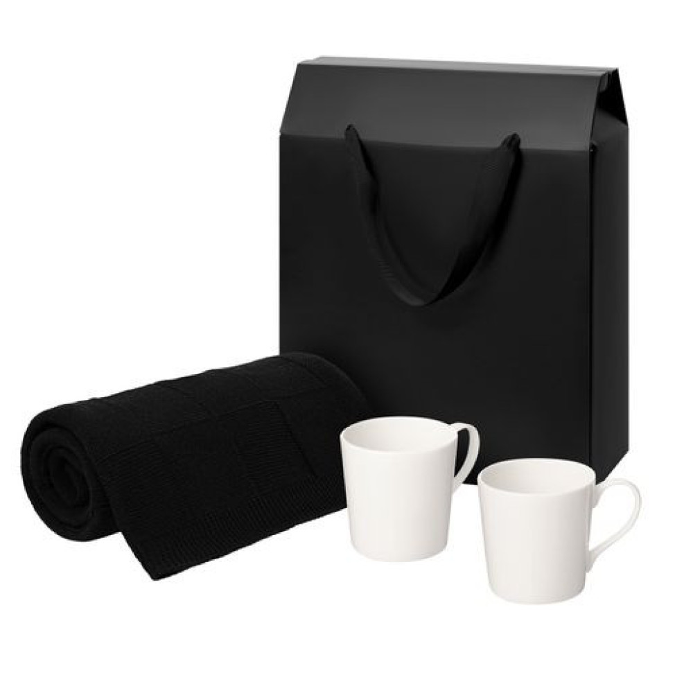 Подарочный набор Сиена (Siena), Селла (Cella), черный в коробке-пакете (две фарфоровых кружки, плед)