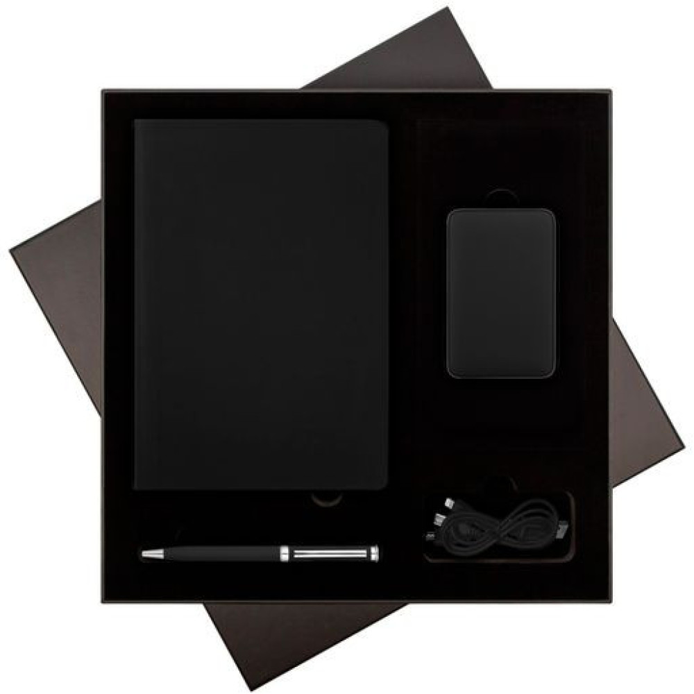 Подарочный набор Спарк (Spark), черный (ежедневник, ручка, аккумулятор)