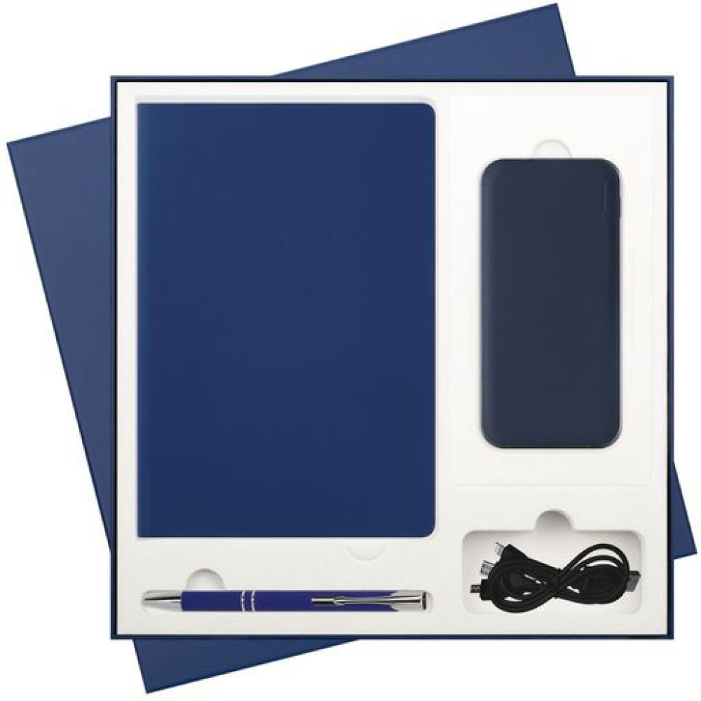 Подарочный набор Спарк (Spark), синий (ежедневник, ручка, аккумулятор)