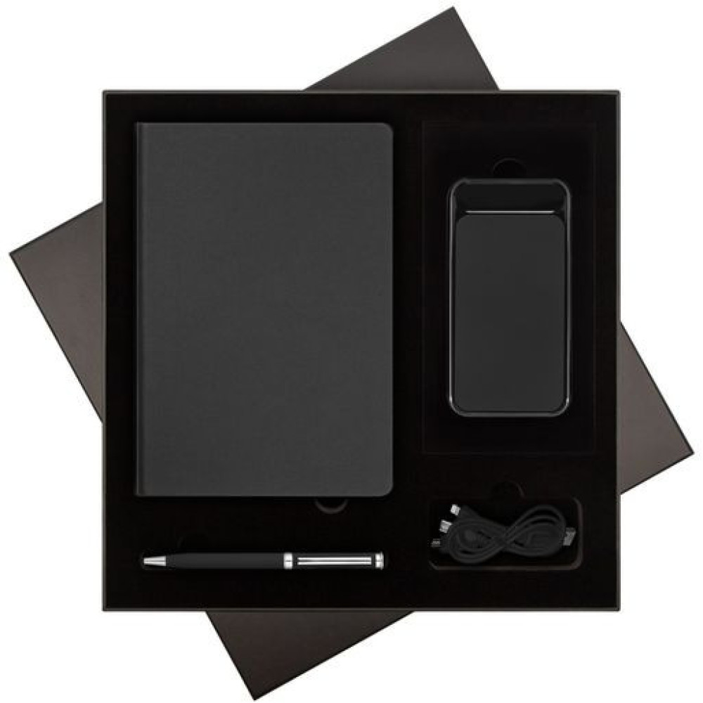 Подарочный набор Стар (Star), черный (ежедневник, ручка, аккумулятор)
