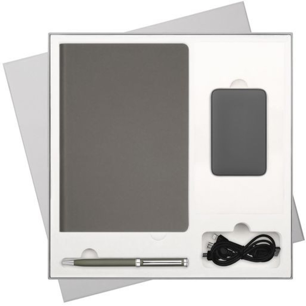 Подарочный набор Стар (Star), серый (ежедневник, ручка, аккумулятор)