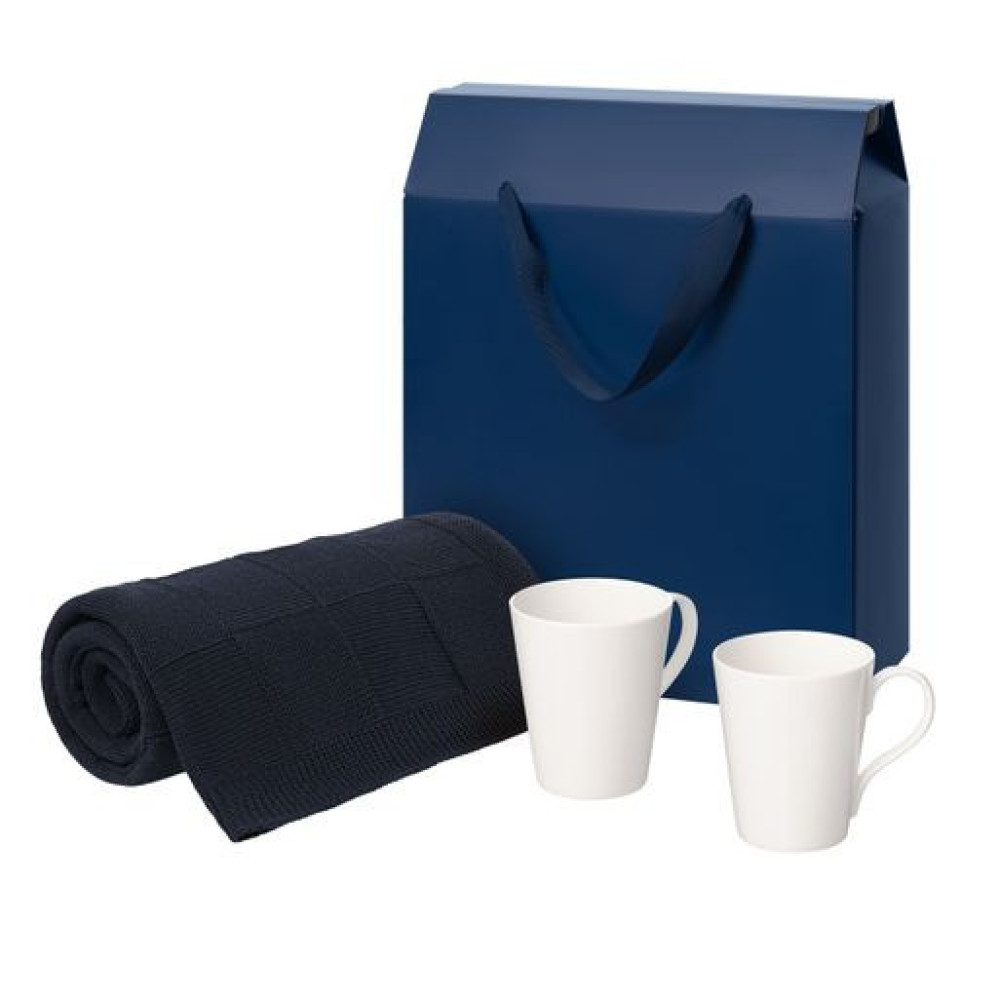 Подарочный набор Веста (Vesta), Селла (Cella), синий в коробке-пакете (две фарфоровых кружки, плед)
