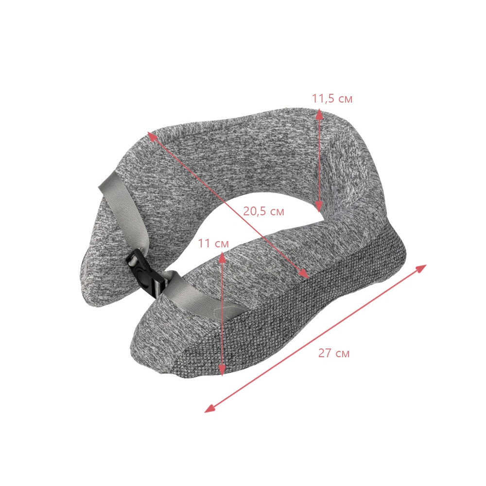 Подушка TORBER, дорожная, с эфектом памяти, серая, полиэстер, 20х27х10 см