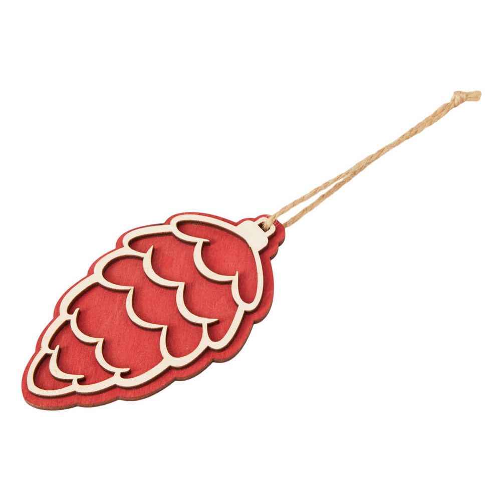 Подвеска шишка с цветной подложкой, красная подложка