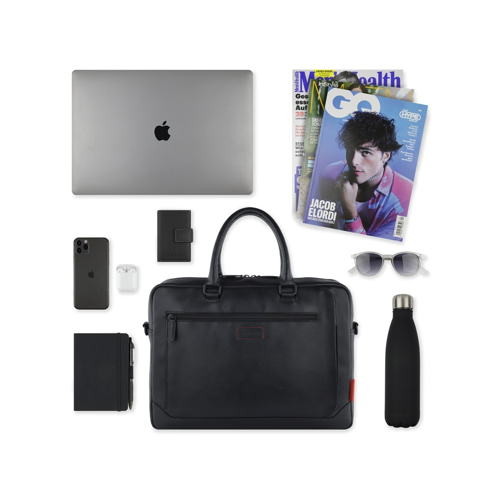 Портфель мужской BUGATTI Clark, чёрный, воловья кожа/полиэстер, 40х9,5х29 см, 10 л