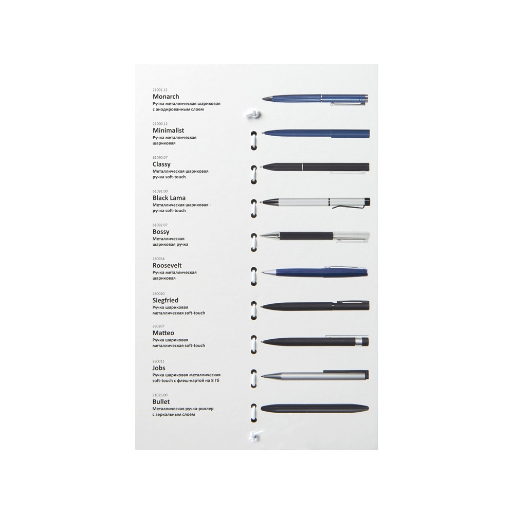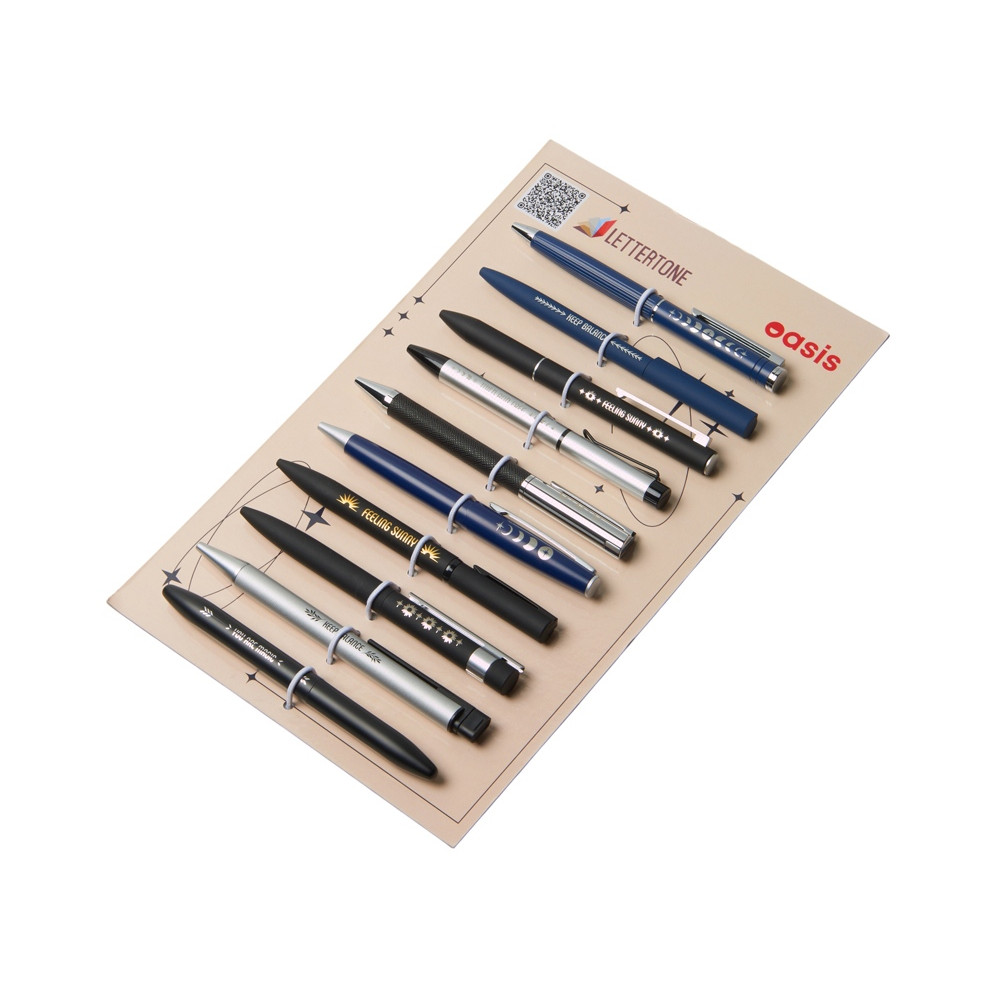 Промо-набор — идеальный инструмент для презентаций: клиенты могут подержать ручки в руках, опробовать их в деле и наглядно увидеть различия между видами нанесения. При этом все самые важные модели собраны в одном легком и компактном наборе.