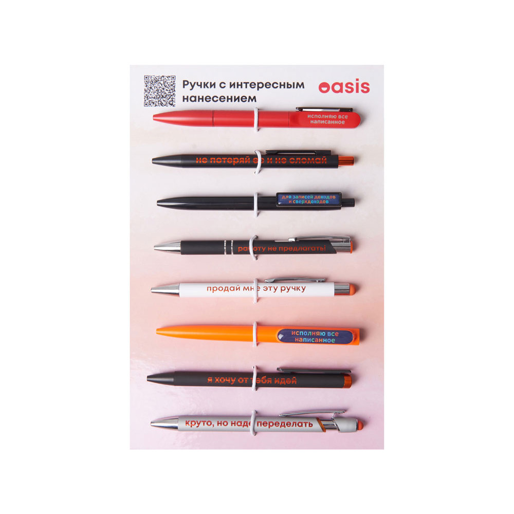 Промо-сет ручек с интересными нанесениями — это презентационный комплект, включающий 8 уникальных моделей с несколькими вариантами нанесения: гравировка и заливка полимерной смолой.