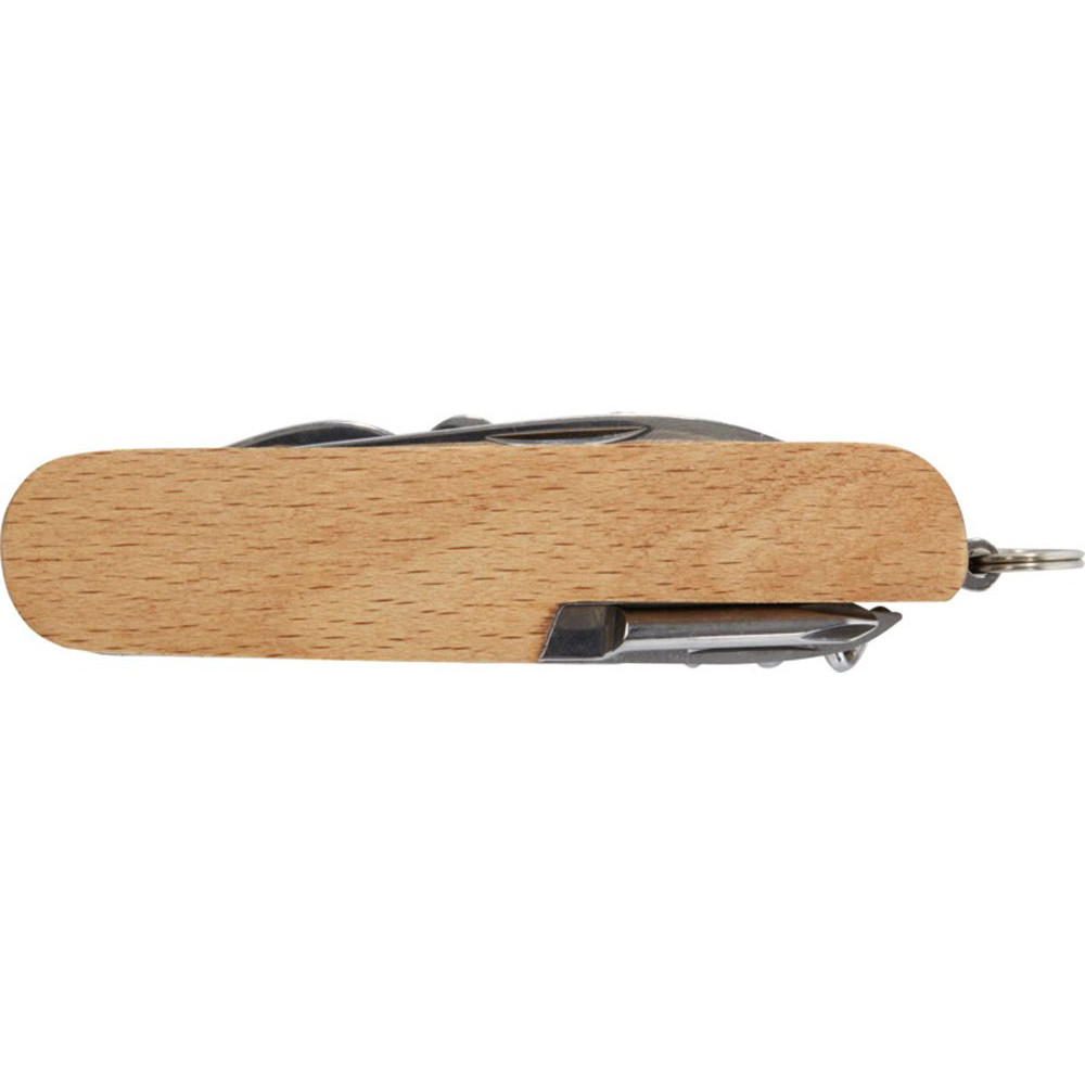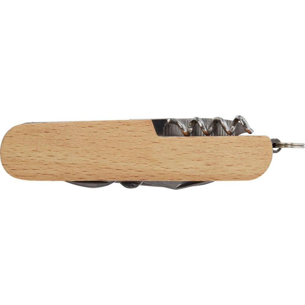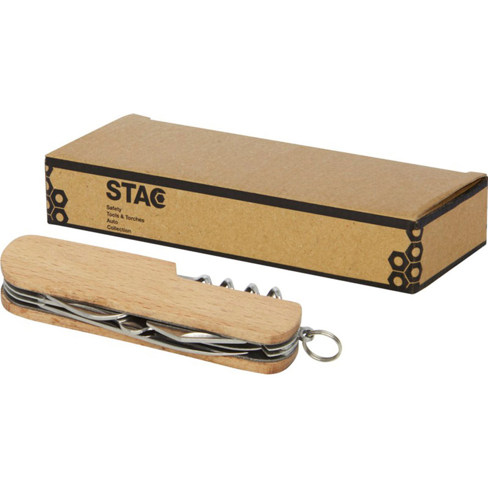 Прочный и долговечный компактный карманный нож из высококачественной нержавеющей стали с рукоятками из буковой древесины. Этот карманный нож должен быть у любого скаута, мастера и любителя отдыха на природе. Имеет 7 функций: нож, штопор, напильник/очиститель напильника, кольцо для ключей, плоская отвертка, открывалка для бутылок/банок и ножницы. Используемая буковая древесина поступает от надежных поставщиков, соблюдающих все экологические и социальные нормы. Размер в открытом состоянии 17 x 2,5 см, а в закрытом — 9,5 x 2,5 см. Поставляется с инструкцией по эксплуатации и упакован в подарочную коробку из переработанного картона размером 12 x 4,5 x 2 см.