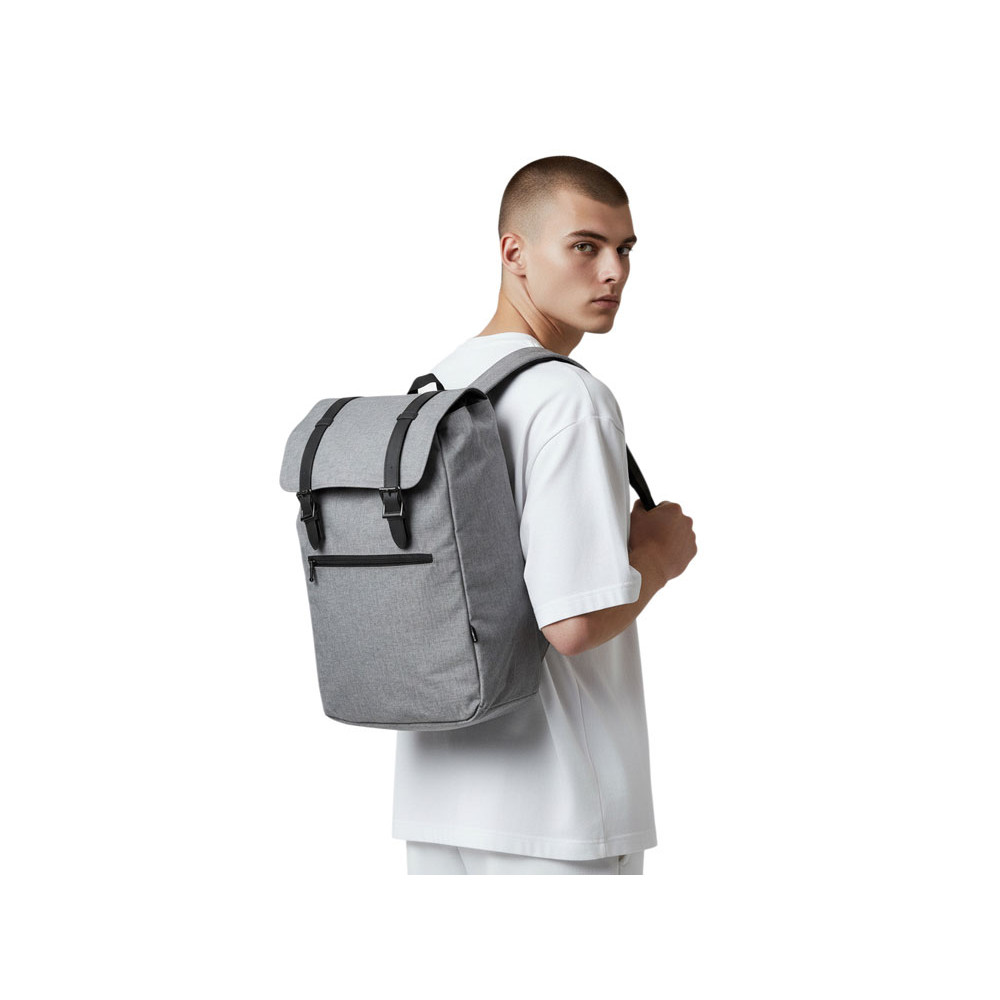 Легкий и вместительный рюкзак закрывается с помощью двух магнитов и стяжки-шнурка. Внутри расположен карман для ноутбука, который фиксируется эластичной лентой на липучке. Снаружи - карман на молнии. Лямки регулируютcя по длине.