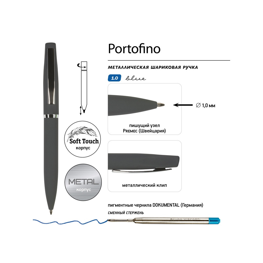 Ручка металлическая шариковая Portofino, софт-тач, 1.0 мм, серый