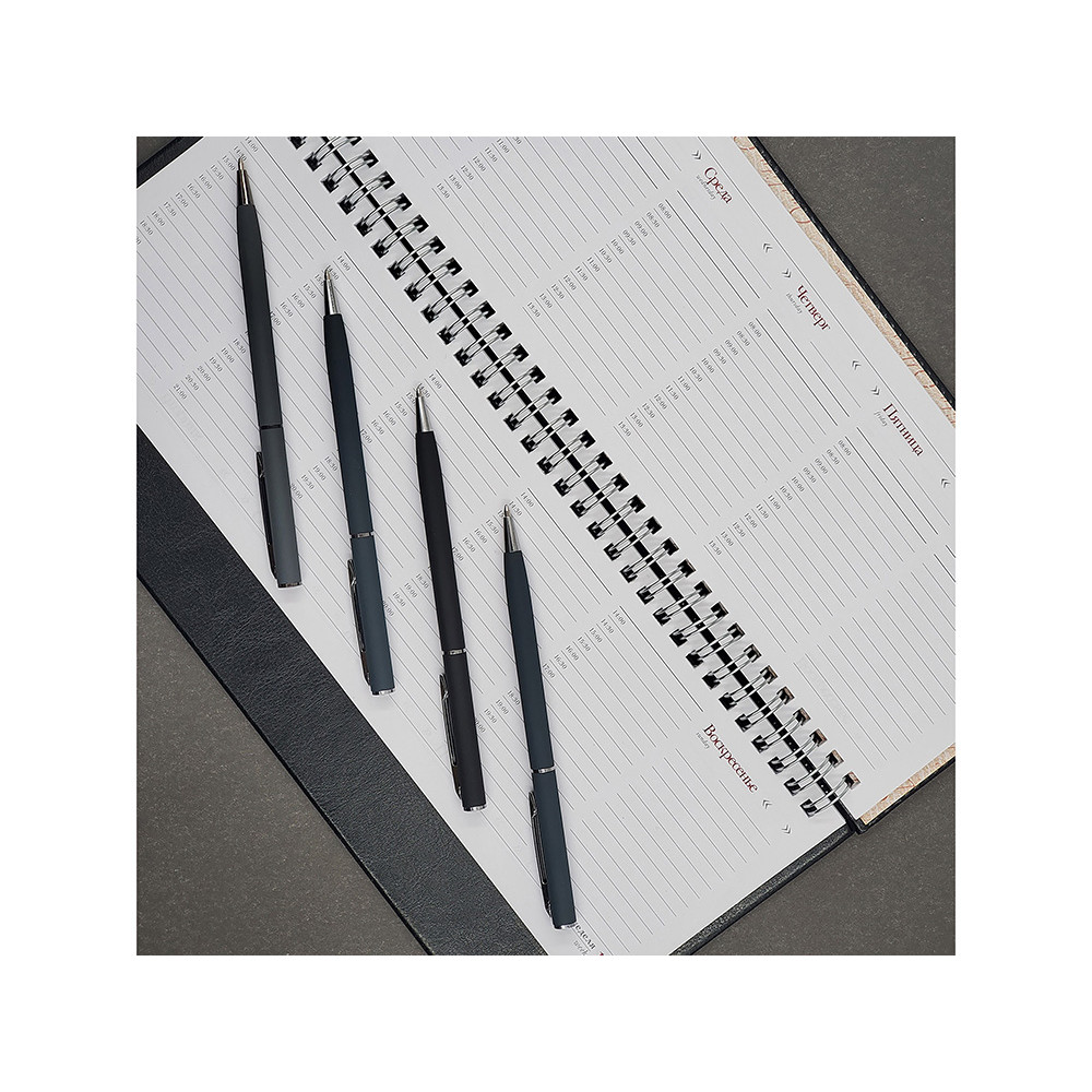 Автоматическая металлическая ручка Bruno Visconti серии Palermo однотонного цвета порадует любителей всего изящного и утонченного. Покрытие корпуса Soft Touch гарантирует дополнительный комфорт в работе с ней. Стержень легко выдвигается благодаря поворотному механизму. Синие пигментные чернила Dokumental (Германия) и пишущий узел Premec (Швейцария) обеспечивают качественное и мягкое письмо.