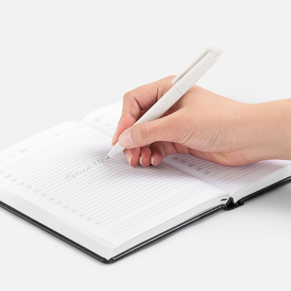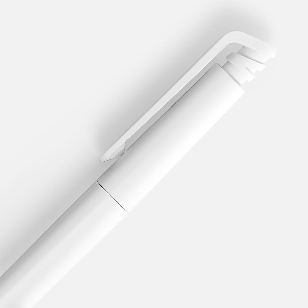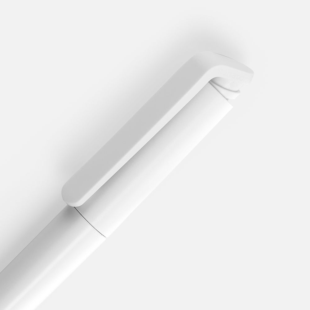 Шариковая ручка с эргономичным треугольным корпусом из матового пластика.