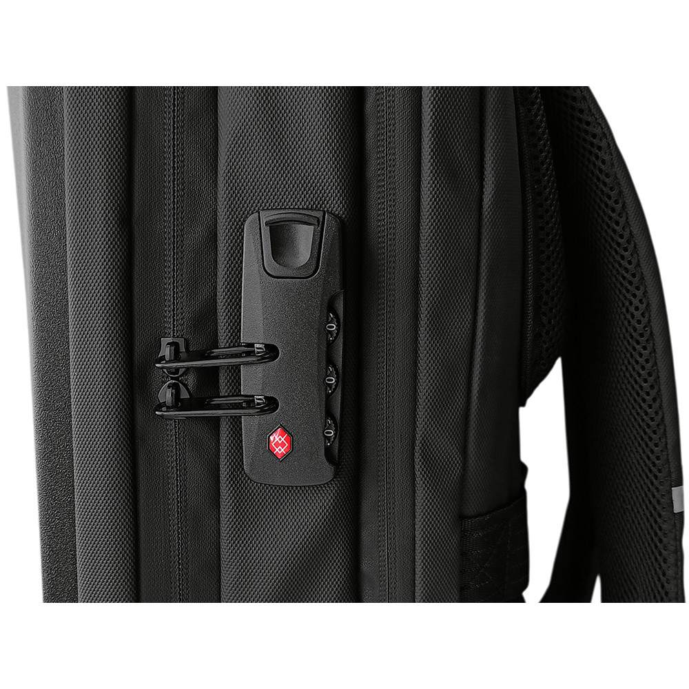 Водостойкий бизнес-рюкзак с пластиковой панелью спереди выглядит стильно и обеспечивает бережное хранение ваших личных вещей. Подходит для передвижений по городу и деловых поездок. 2 вместительных отделения позволяют разместить все необходимое: большое отделение для одежды с фиксирующими ремнями и органайзером, меньшее отделение с карманами для ноутбука и планшета и сетчатым органайзером. Несанкционированный доступ к содержимому вашего рюкзака будет затруднён благодаря кодовому замку и прочной пластиковой панели спереди. В рюкзаке предусмотрено много дополнительных удобств для использования: