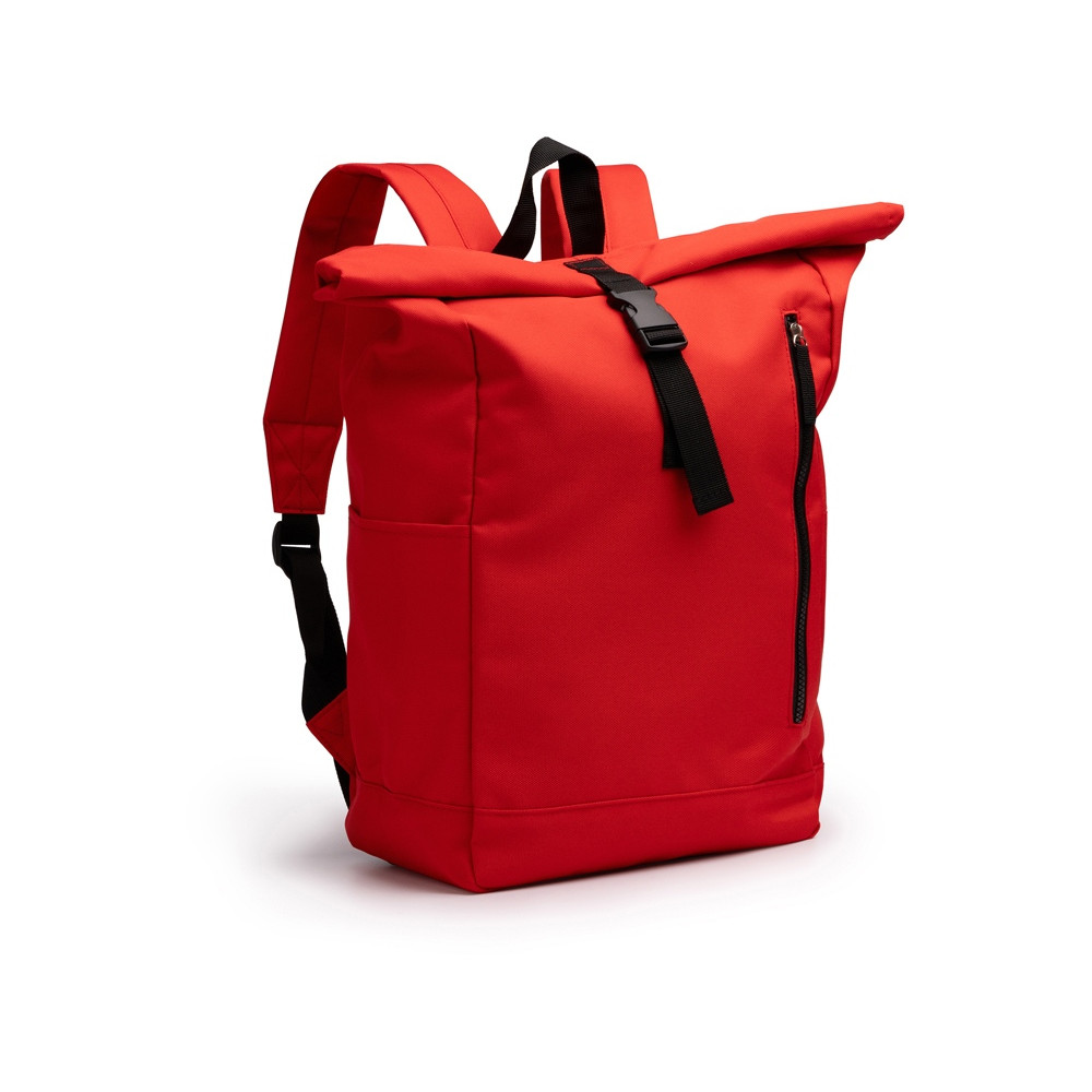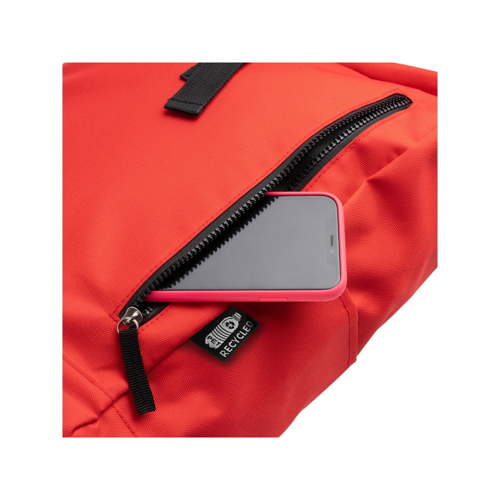 Рюкзак из полиэстера RPET. Основное вместительное отделение с широким отверстием. Внешний карман на молнии и два боковых кармана. Мягкие сетчатые плечевые ремни и спинка.
