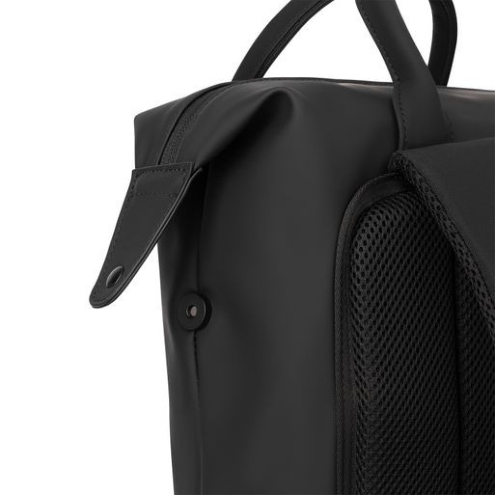 Модель выполнена из мягкого полиуретана нового поколения с матовой фактурой, устойчива к брызгам и мелким повреждениям. Прорезиненная молния наружного кармана и боковые панели на магнитах подчеркивают чистоту линий.