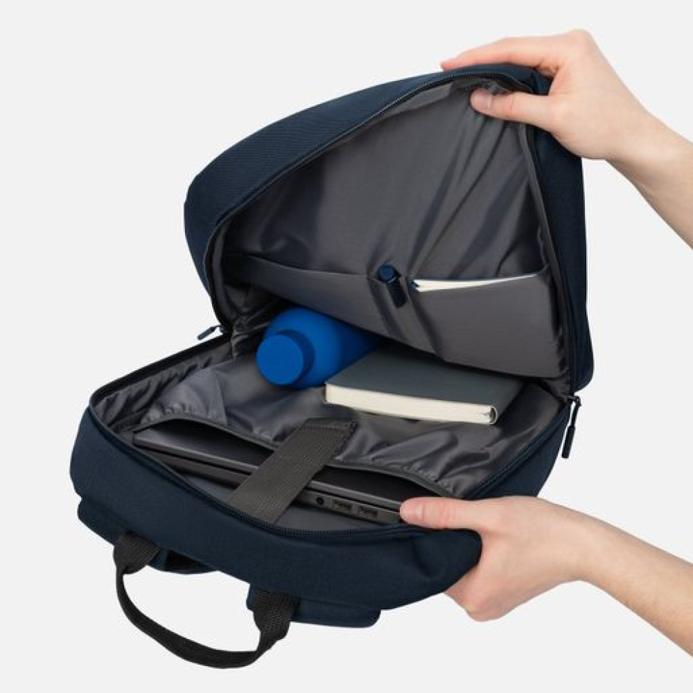 Основное отделение с легкостью вместит ноутбук с диагональю до 15,6 дюймов благодаря уплотненному карману, который защищен ремнем на липучке.