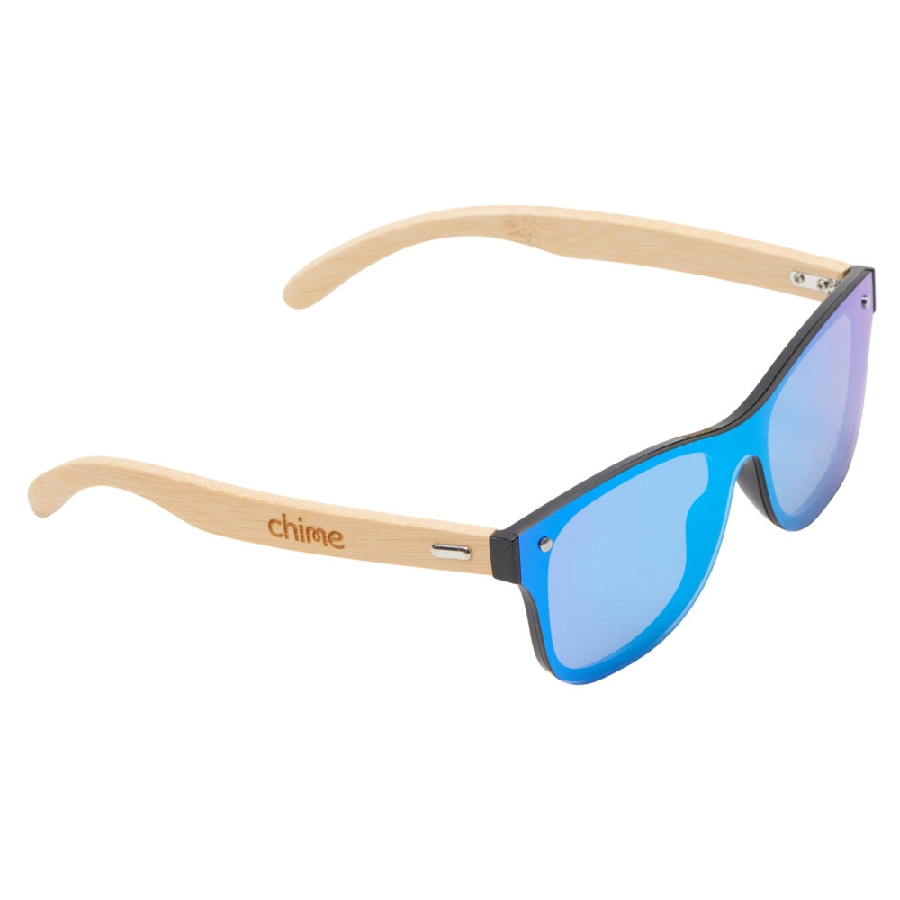 Солнцезащитные очки из бамбука с зеркальной линзой Rockwood Motion, синий (гравировка)