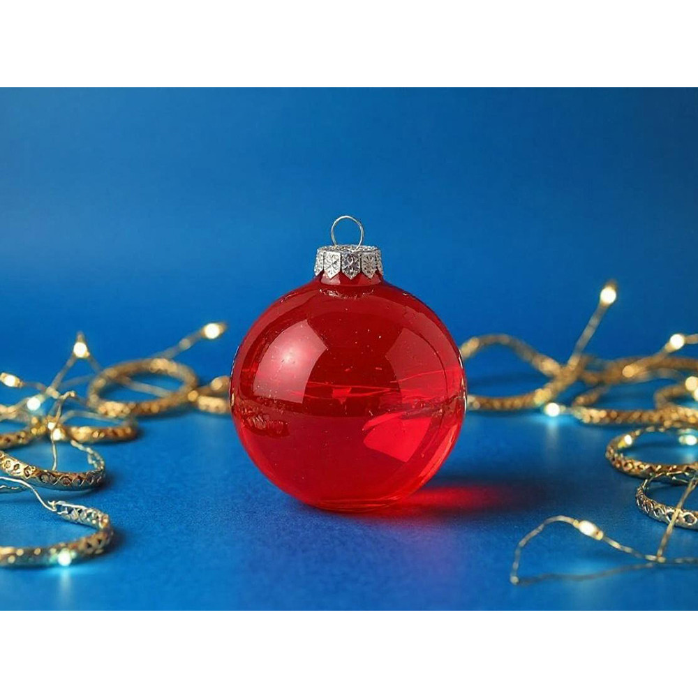 Стеклянный елочный шар Frozi, красный прозрачный, с серебристым колпачком