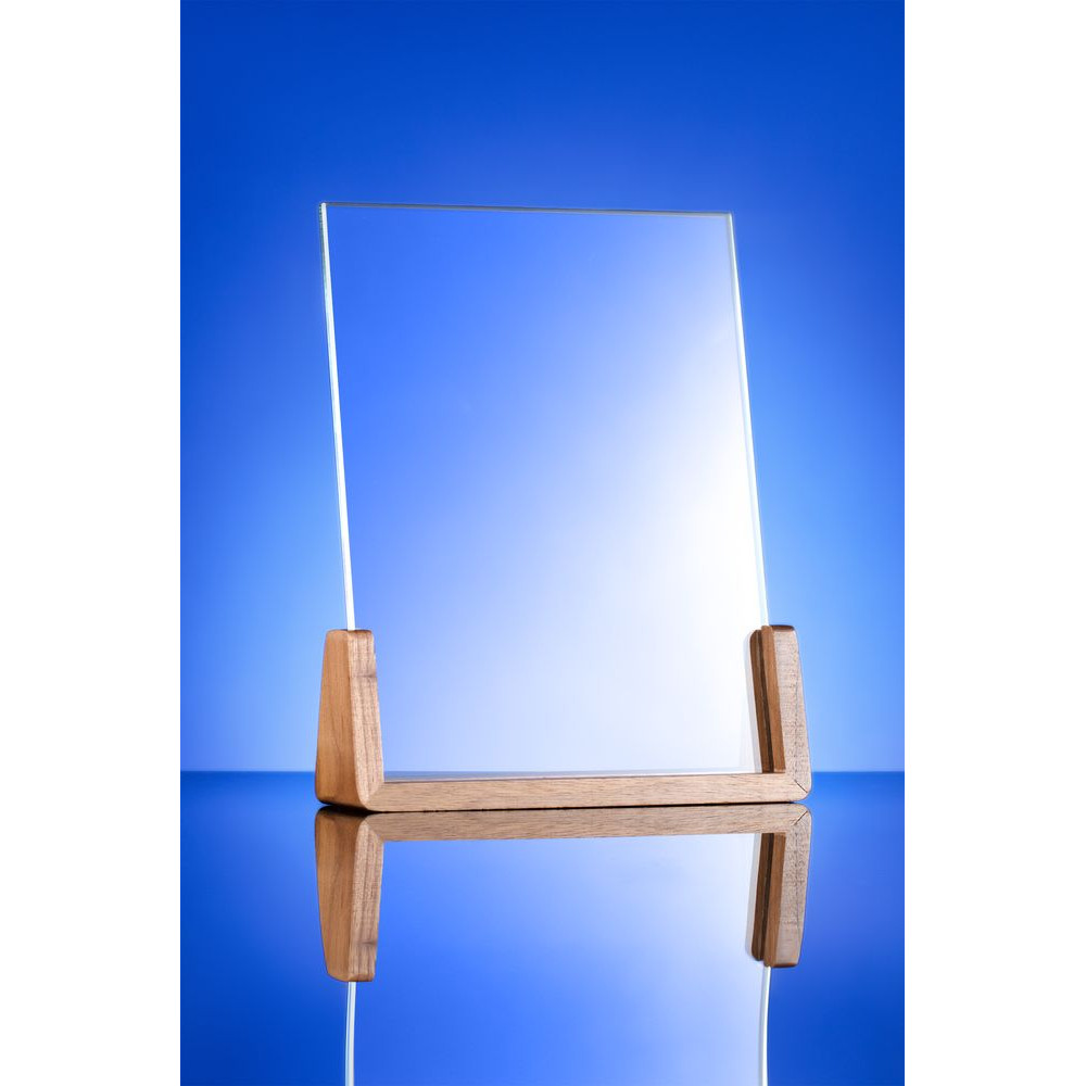Эта минималистичная и в то же время оригинальная, легкая по восприятию награда поможет красиво и неброско отметить важную веху в карьере. Деревянная лаконичная подставка удачна не только функционально — стела не выпадет из рук ни при награждении, ни позднее, но и эстетически — для удачного оформления своего уголка гордости или тщеславия (кому как больше нравится). Стела отлично впишется и в оформление рабочего места — для дополнительной мотивации и как приятное напоминание о пройденном пути.