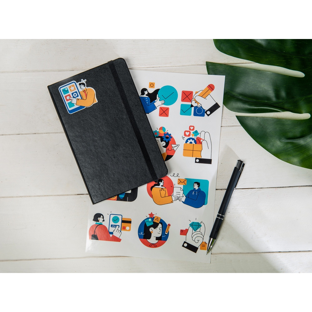 Лист с наклейками формата А4, которые можно использовать для украшения ноутбуков, планшетов, телефонов, дневников, скетчбуков и многого другого.