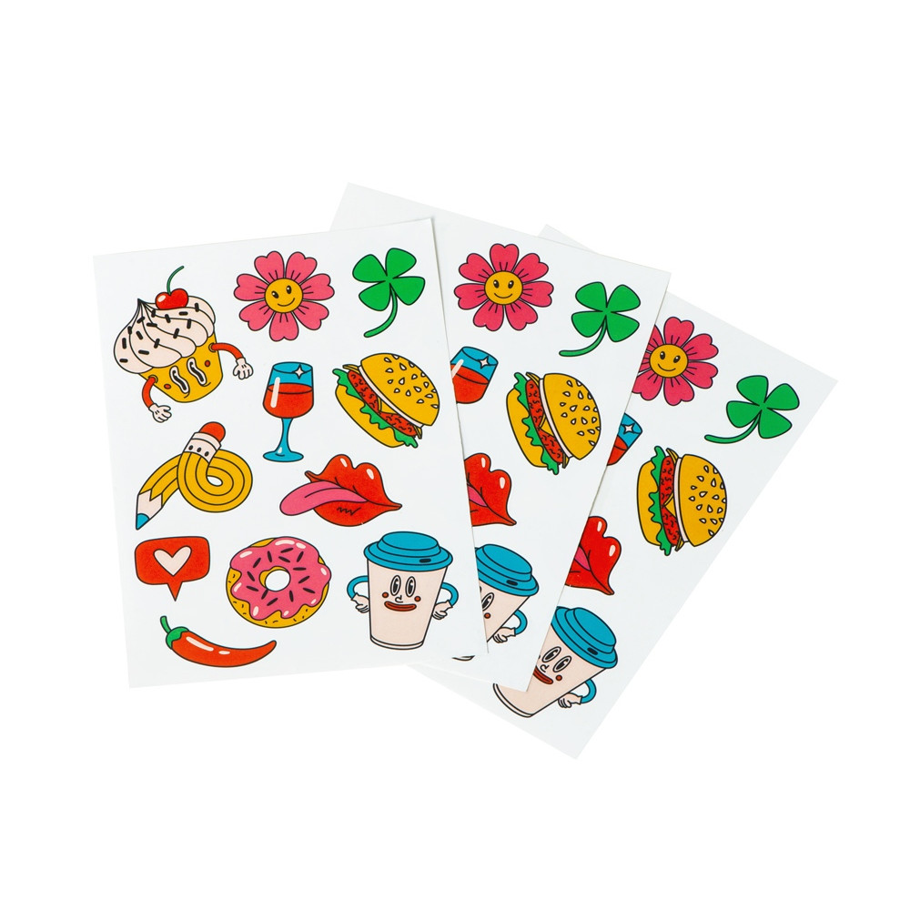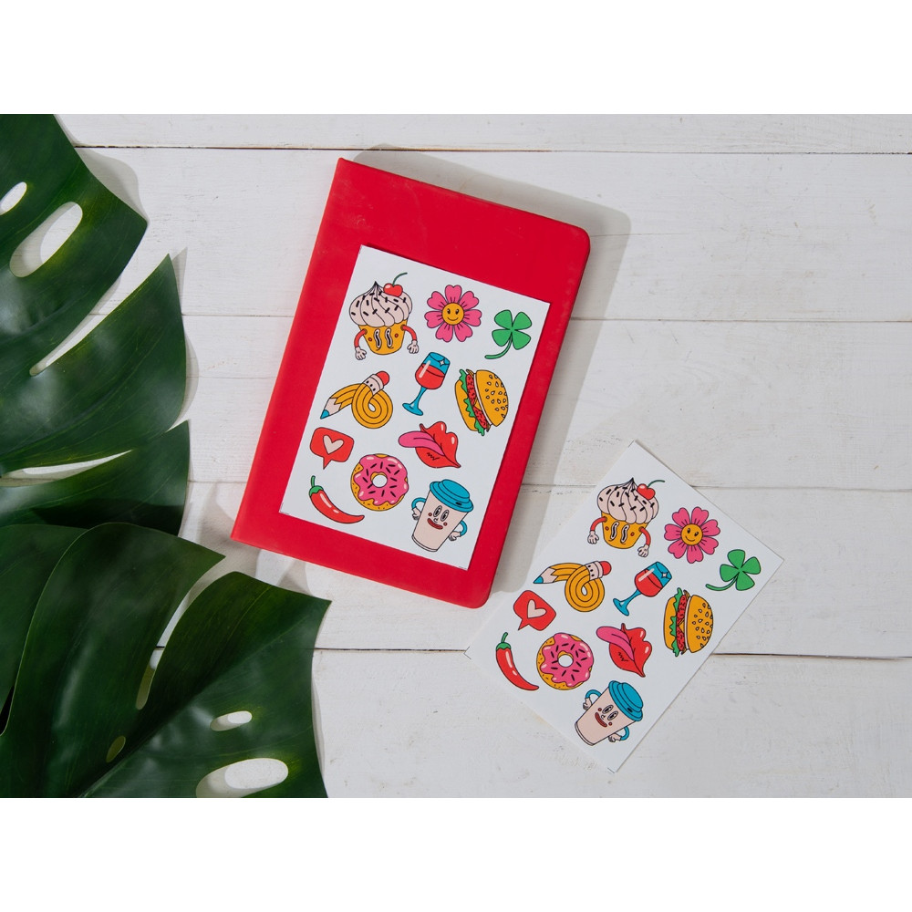 Лист с наклейками формата А6, которые можно использовать для украшения ноутбуков, планшетов, телефонов, дневников, скетчбуков и многого другого.