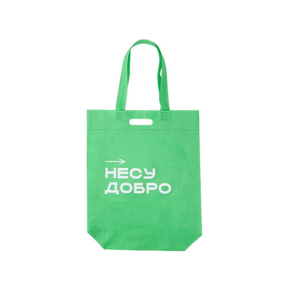 Сумка для покупок из спанбонда Ambit, 380*120*400 с ручкой 550/30 мм, зеленое яблоко (термотрансфер)