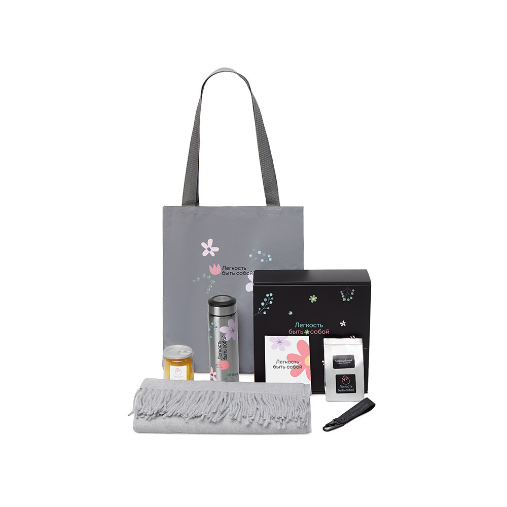 Подарочный набор Re:f. Walk с палантином, шоппером и термосом, серый