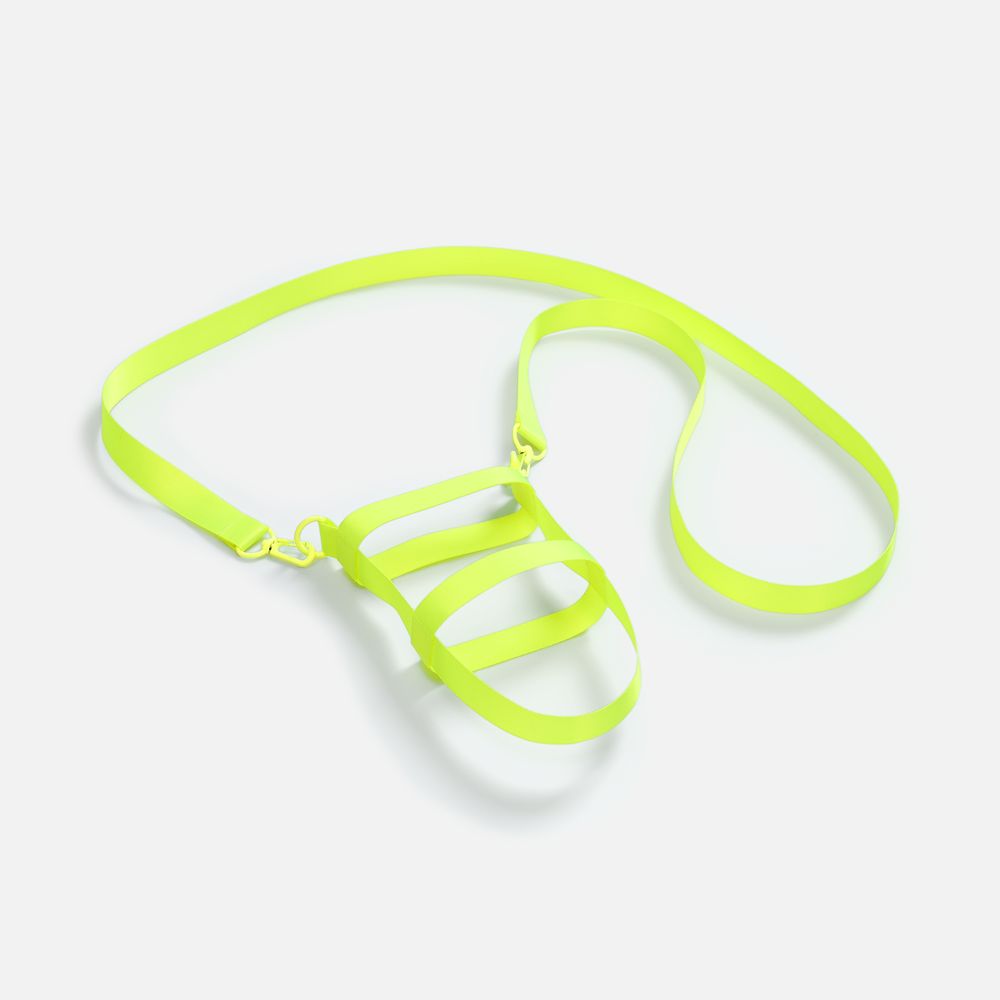 Сумка для бутылки из стропы Kesta построена по принципу конструктора из нескольких обязательных элементов: текстильных строп Fune 20 разной длины, двух застежек-карабинов и двух полуколец. Благодаря такой системе сумка легко адаптируется под конкретную бутылку — учитывает ее форму, диаметр и высоту, обеспечивая плотную посадку и комфорт при переноске.