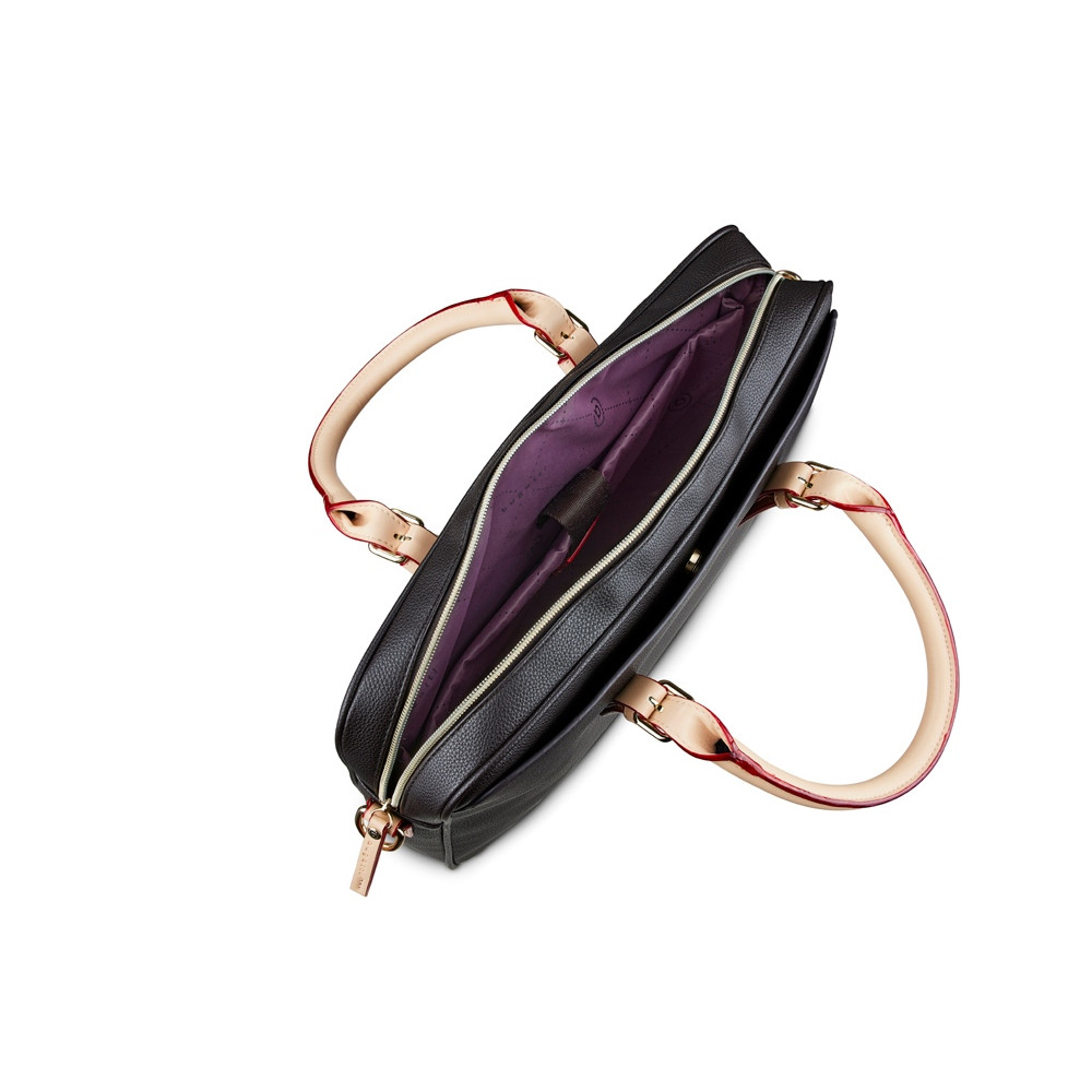 ПОРТФЕЛЬ ELLA Стильные сумки и кошельки из нашей коллекции ELLA украсят любой ваш образ. В изделиях этой серии элегантная эстетика гармонично сочетается с современным городским дизайном. Красивые изогнутые ручки, двухцветные плечевые ремни и изысканная фурнитура подчёркивают уникальный стиль коллекции. Модели произведены из прочного износостойкого полиуретана, что гарантирует их чрезвычайно долгий срок службы. СВОЙСТВА Внутренняя организация: основное отделение на молнии с карманом на молнии, мягким отделением для ноутбука 15’’, карманом с 3 слотами для карточек, 3 держателями для пишущих принадлежностей Внешняя организация: передний карман на магнитной кнопке, задний карман на молнии с ремнём для соединения с телескопической ручкой чемодана, ручки высотой 14 см, съёмный регулируемый плечевой ремень (до 130 см) Размер: 38 x 6 x 27,5 см Вес: 0,93 кг Материал: полиуретан