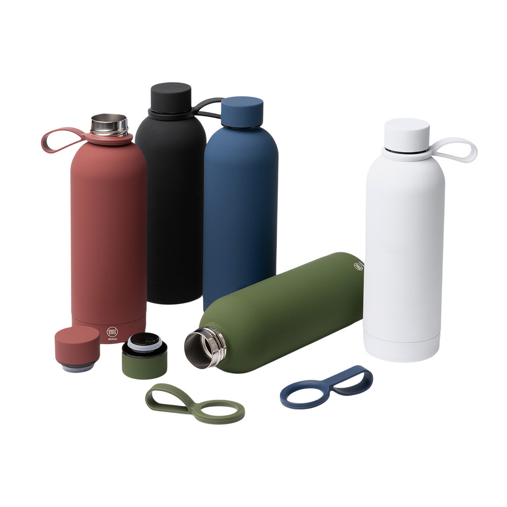 Термобутылка из переработанной нержавеющей стали 304. Мягкая прорезиненная поверхность на корпусе. Удобная силиконовая ручка для переноски. Оснащена противокапельной системой благодаря силиконовому кольцу, встроенному во внутреннюю часть крышки. Крышка и ручка соответствуют цвету корпуса. Объем: 500 мл.