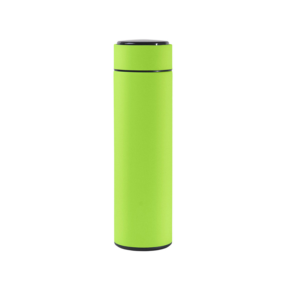 Термос из нержавеющей стали, покрытый цветным soft touch, с крышкой, в которой встроен термометр и LED дисплей, показывающий температуру внутри термоса. Объем: 500 мл. Упаковка: каждый термос в крафт коробке.