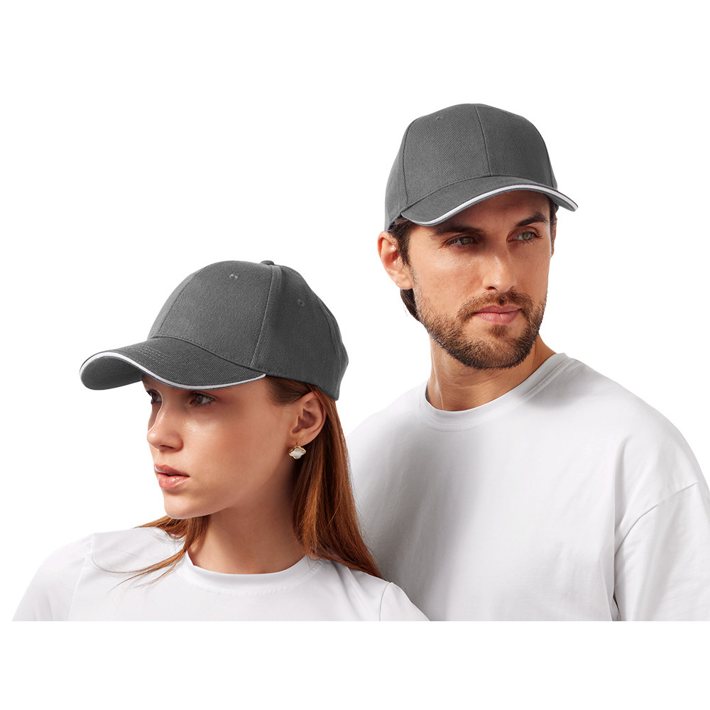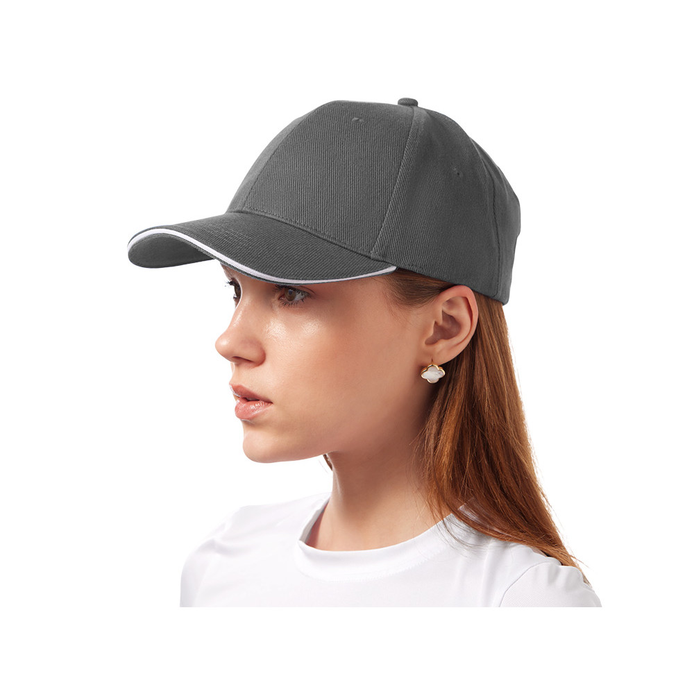 Стильный контрастный кант по козырьку и заднему хлястику добавляет изделию выразительности и делает бейсболку заметным элементом образа.