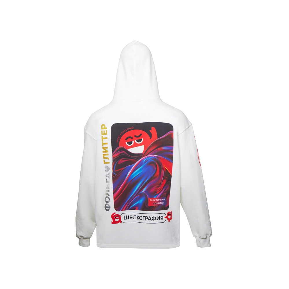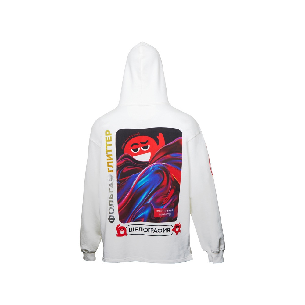 Худи оверсайз Alpha.01 унисекс, молочный, все виды нанесения на текстиле на одной толстовке