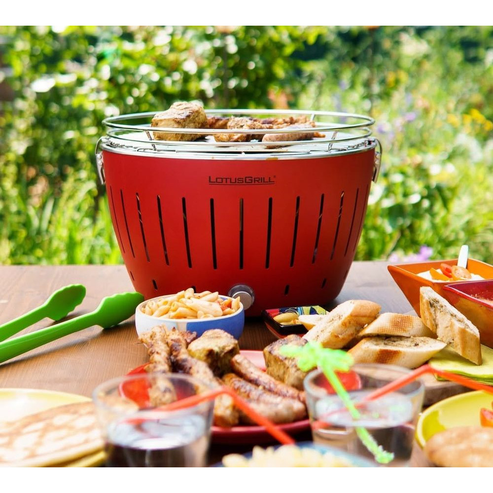 Угольный гриль округлой формы. Благодаря особой конструкции нижняя часть гриля не нагревается, его можно размещать даже на чувствительных поверхностях.