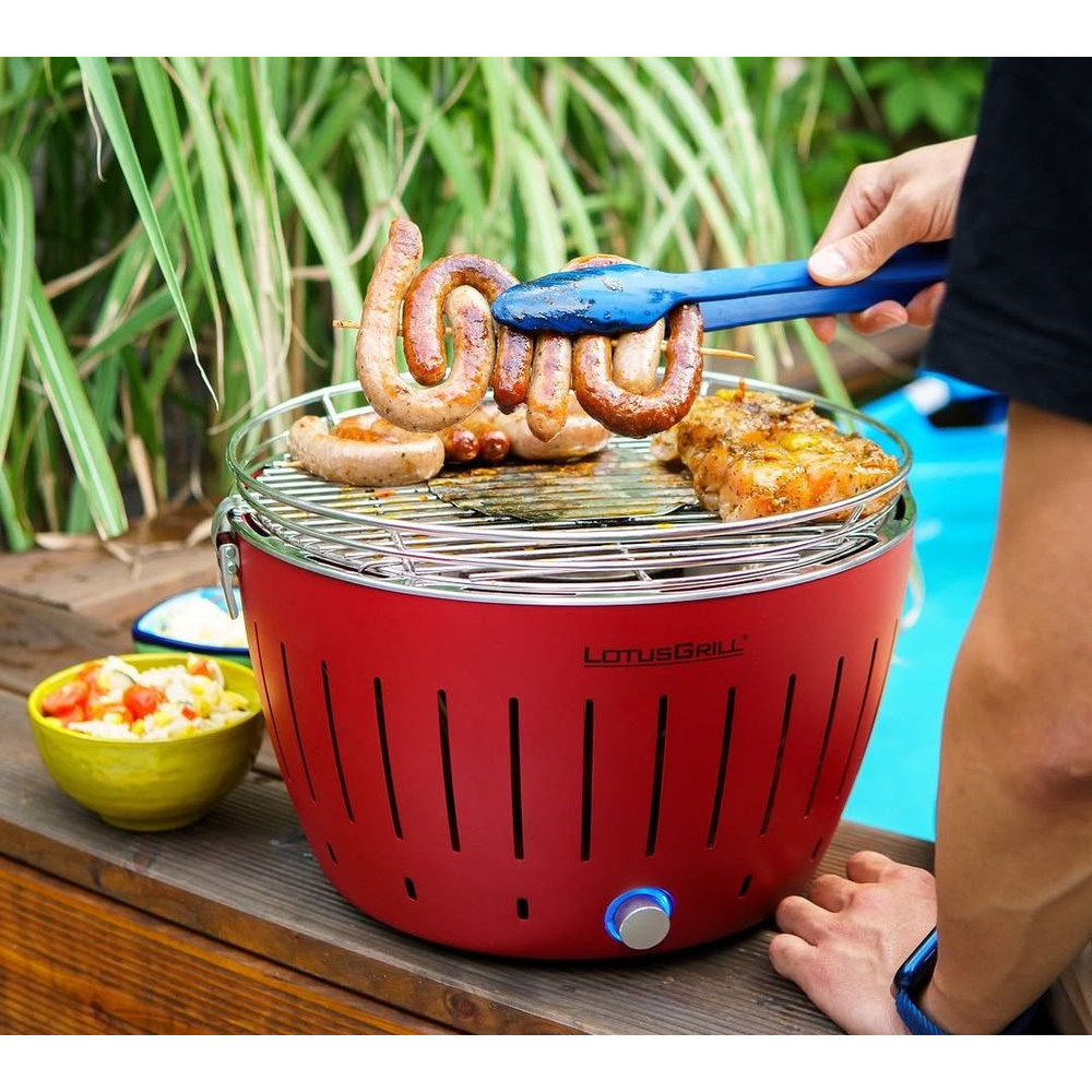 Гриль оснащен встроенным вентилятором с питанием от аккумулятора или батареек, обеспечивающим подачу свежего воздуха к углю. В результате угли имеют постоянный доступ к кислороду, что обеспечивает быстрое и практически бездымное разжигание гриля.