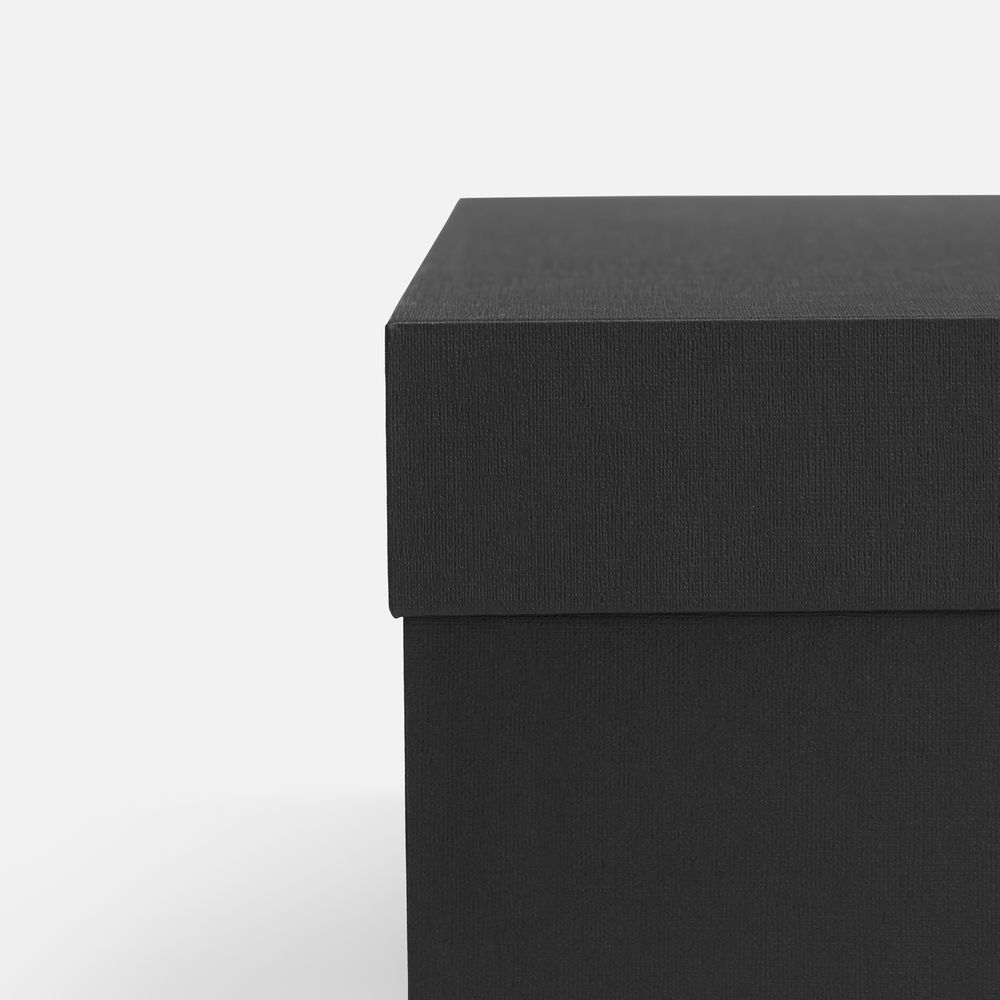 Коробка изготовлена из переплетного картона, кашированного дизайнерской бумагой.