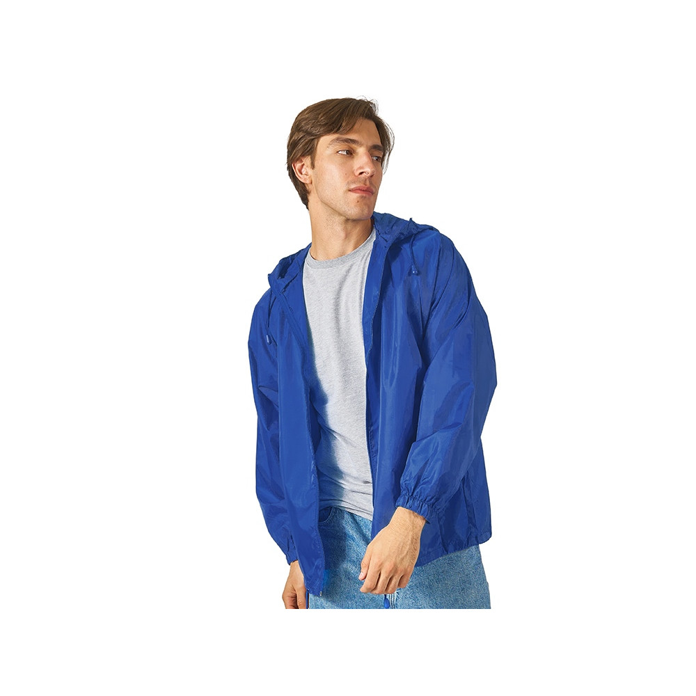 Мужская ветровка с капюшоном без подкладки застегивается на молнию, манжеты на резинке, нижняя часть регулируется с помощью шнурка. Ветровка Promo очень легкая, убирается в удобный чехол и почти не занимает места – она идеальна в качестве сувенира на мероприятиях, проходящих на улице в теплое время года. Доступно четыре расцветки.