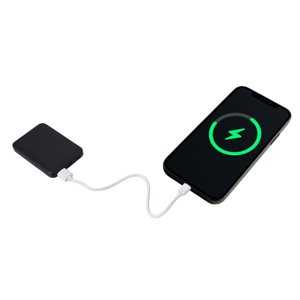 Стильный, тонкий и практичный — этот 5000 мАч повербанк создан для тех, кто ценит мобильность и универсальность. Идеальный корпоративный подарок для клиентов, партнёров и сотрудников, которые всегда в движении! Совместим со всеми смартфонами, имеется двунаправленный USB-C и дополнительное удобство - входной разъем Lightning. Разъемы USB-C и USB-A обеспечивают одновременную зарядку двух устройств. Благодаря мини размерам 91.5*62* мм и лёгкому весу (всего 102 г) легко помещается даже в карман рубашки или кошелёк. Лаконичная матовая поверхность выгодно подчеркнет логотип, а надёжная система защиты гарантирует безопасность при каждой зарядке. Поставляется в продуманной выдвижной упаковке с быстрым и эффектным открытием.