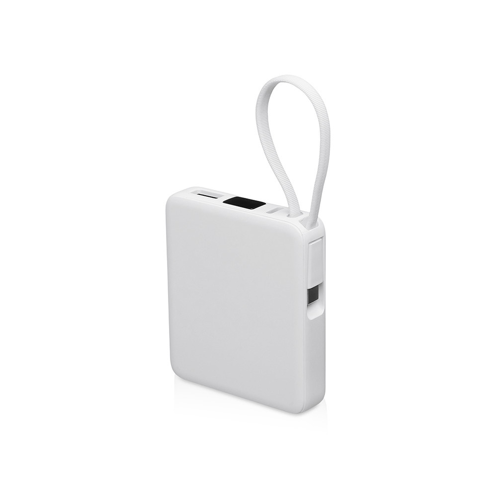 Современный внешний аккумулятор сочетающий стиль и удобство использования . Его миниатюрная квадратная форма легко помещается в карман или сумку, обеспечивая мобильность даже в самых напряженных рабочих буднях. Компактный корпус из прочного АБС-пластика позволяет нанести логотип с максимальной видимостью на любой из двух сторон. Встроенный кабель-ремешок с универсальным разъёмом USB типа С делает устройство практичным решением за счёт отсутствия необходжимости носить кабель с собой.