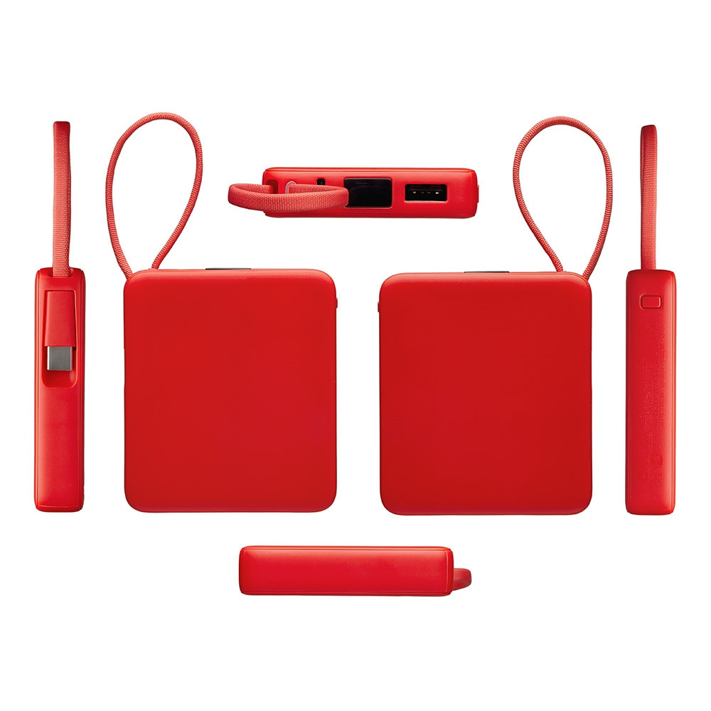 Внешний аккумулятор со встроенным кабелем USB-C Дэнси, 5000 мАч, красный