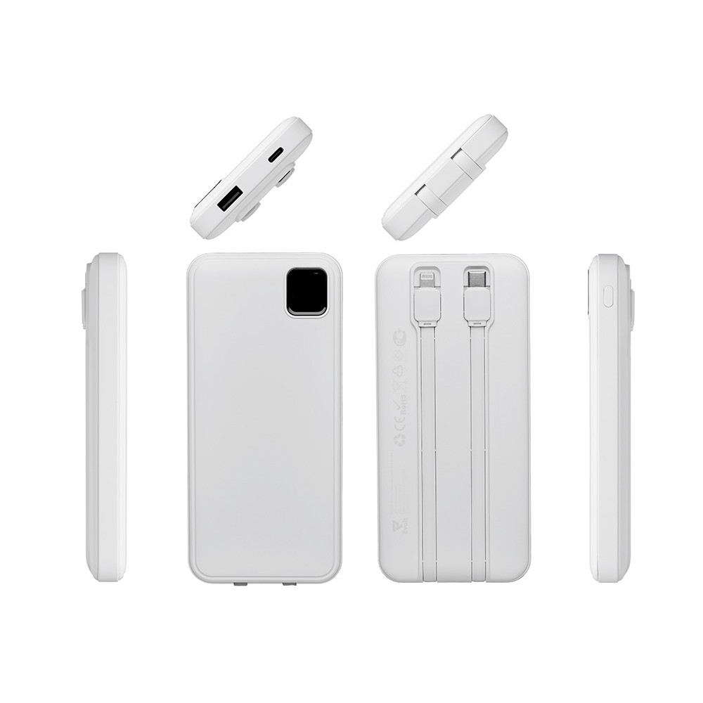 Внешний аккумулятор со встроенными кабелями Фрэйм, 10000мач, белый