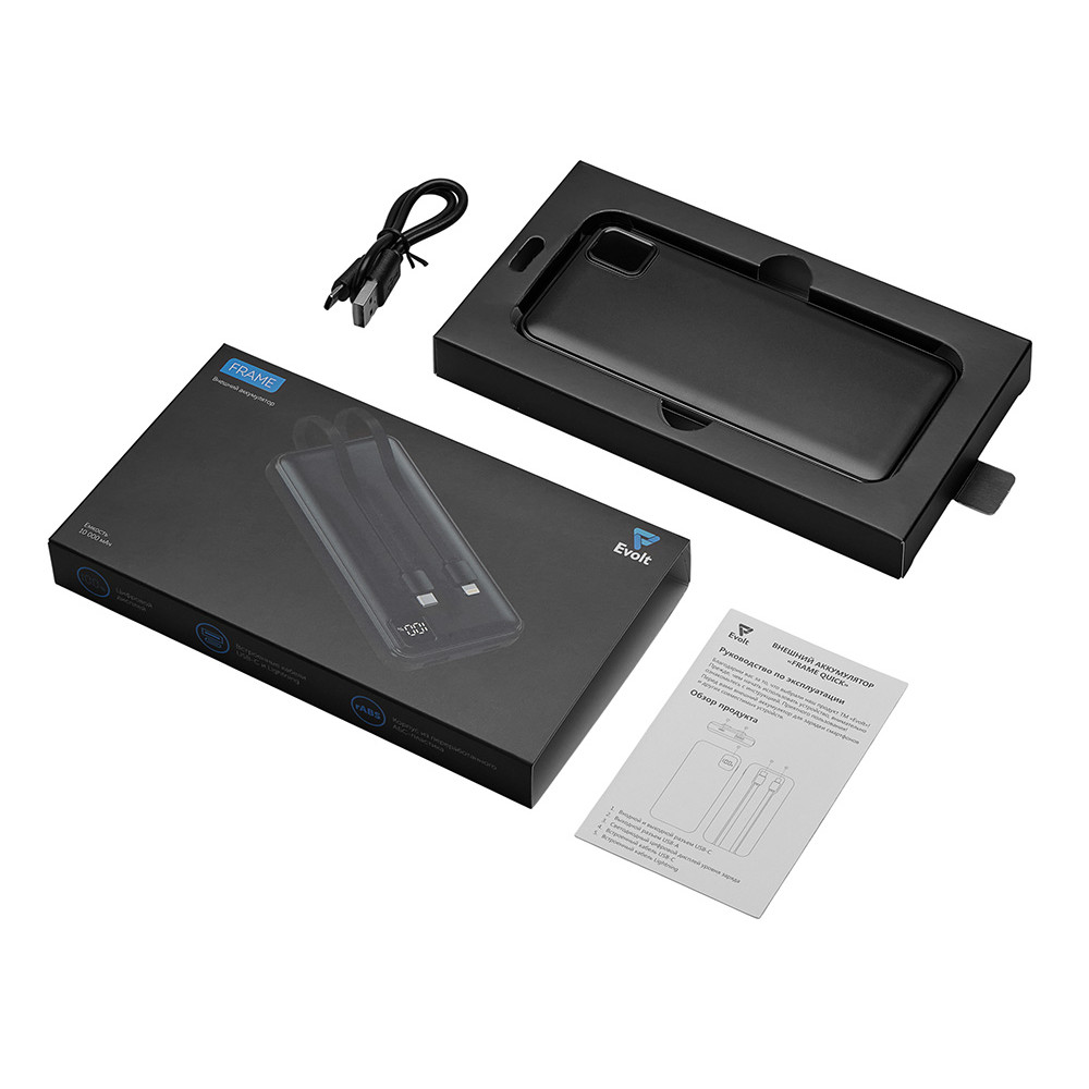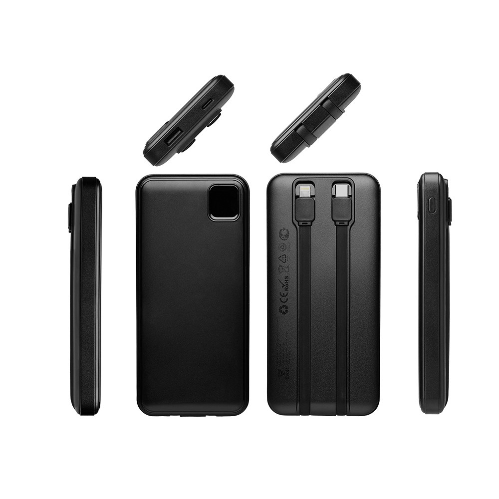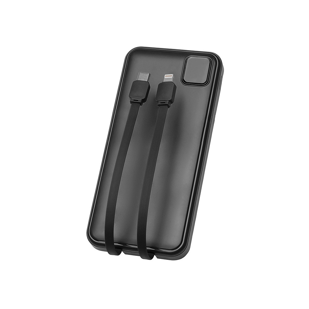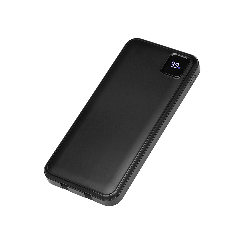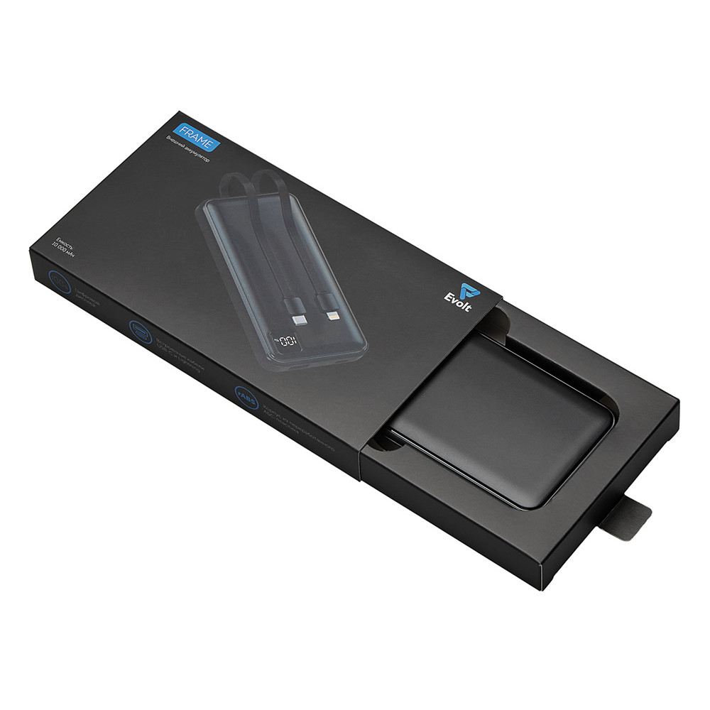 Удобный внешний аккумулятор с встроенными кабелями USB-C и Lightning — ваш надежный партнер в путешествиях, на встречах и в повседневных задачах. Цифровой дисплей в реальном времени показывает точный остаток заряда, а компактные габариты делают его таким же удобным, как смартфон. Прочный корпус из переработанного АБС-пластика и емкость 10000 мАч обеспечивают долгую работу даже при интенсивном использовании. Идеальный выбор для тех, кто ценит комфорт и функциональность в одном устройстве. Продуманная упаковка: для открытия просто потяните за язычок, и появится гаджет с нанесением.