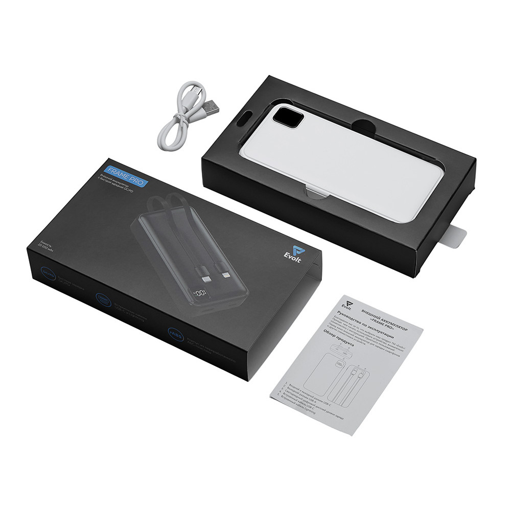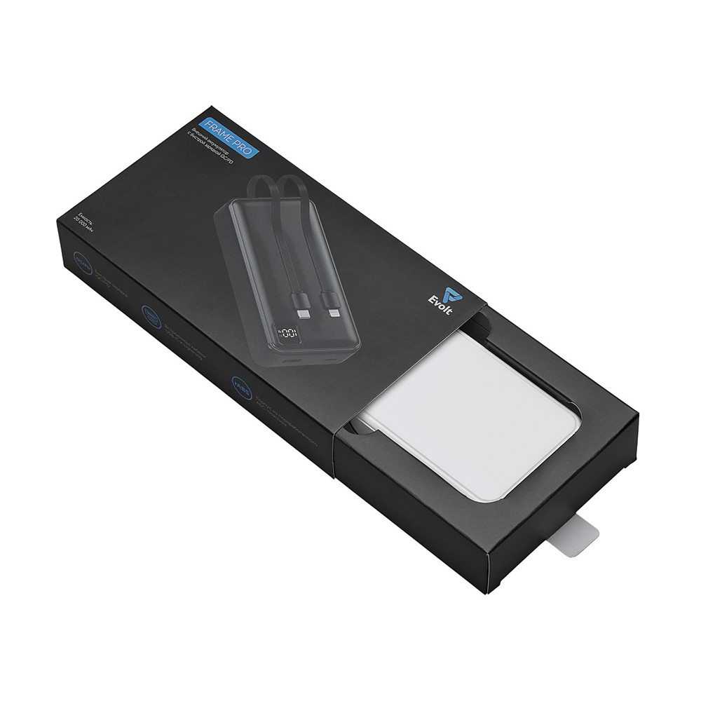Внешний аккумулятор со встроенными кабелями Фрэйм Про, быстрая зарядка, 20000мач, белый