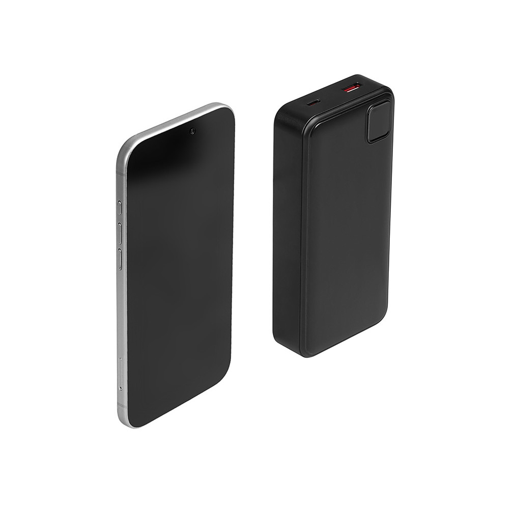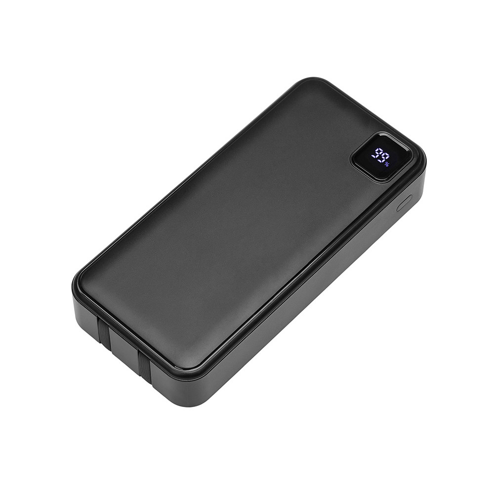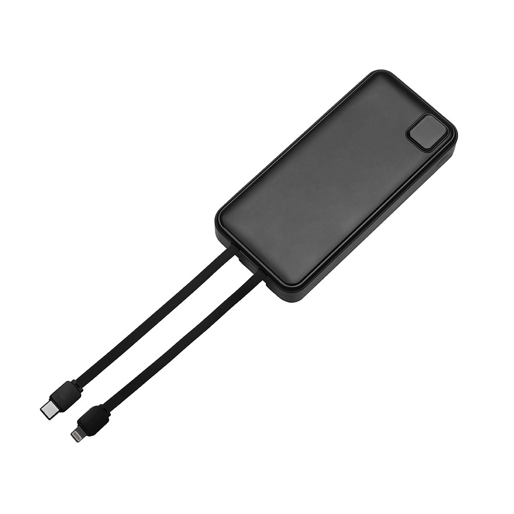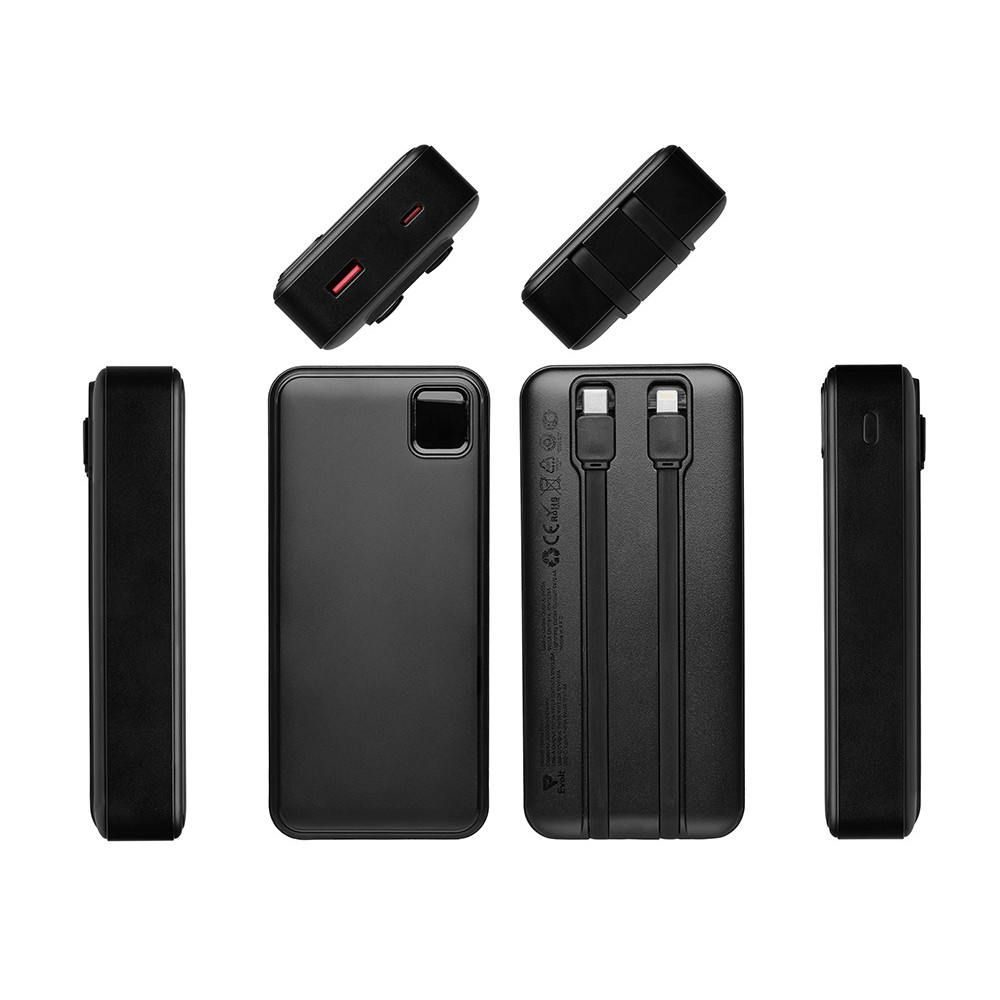Удобный внешний аккумулятор с функцией быстрой зарядки и встроенными кабелями USB-C (симметричный разъём USB тип С) и Lightning (разъём в ранних версиях iPhone) — ваш надежный партнер в путешествиях, на встречах и в повседневных задачах. Цифровой дисплей в реальном времени показывает точный остаток заряда и статус быстрой зарядки, а встроенные кабели и несколько разъемов позволяют заряжать до 4 устройств. Прочный корпус из переработанного АБС-пластика и емкость 20000 мАч обеспечивают зарядом все ваши устройства на долгий срок. Идеальный выбор для тех, кто ценит комфорт и функциональность в одном устройстве. Продуманная упаковка: для открытия просто потяните за язычок, и появится гаджет с нанесением.