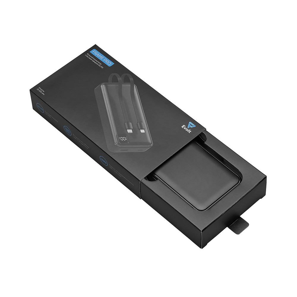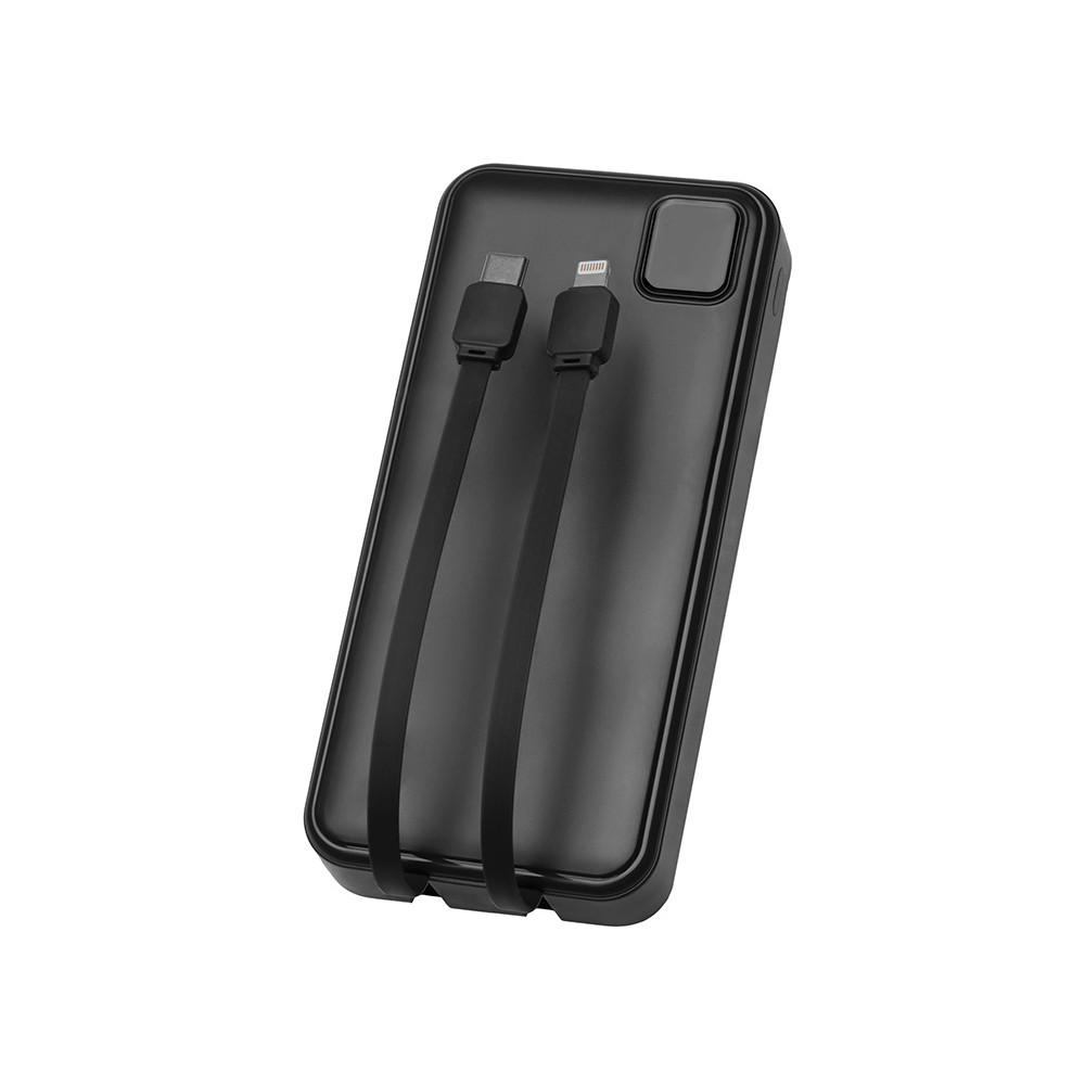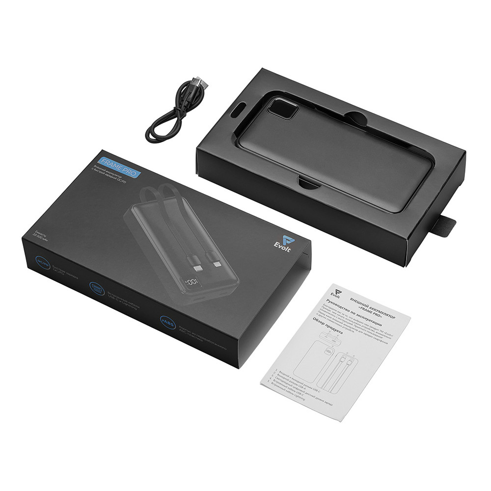 Внешний аккумулятор со встроенными кабелями Фрэйм Про, быстрая зарядка, 20000мач, черный