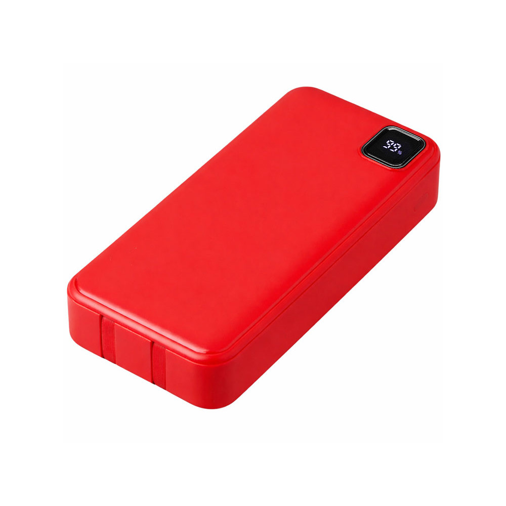 Внешний аккумулятор со встроенными кабелями Фрэйм Про, быстрая зарядка, 20000мач, красный